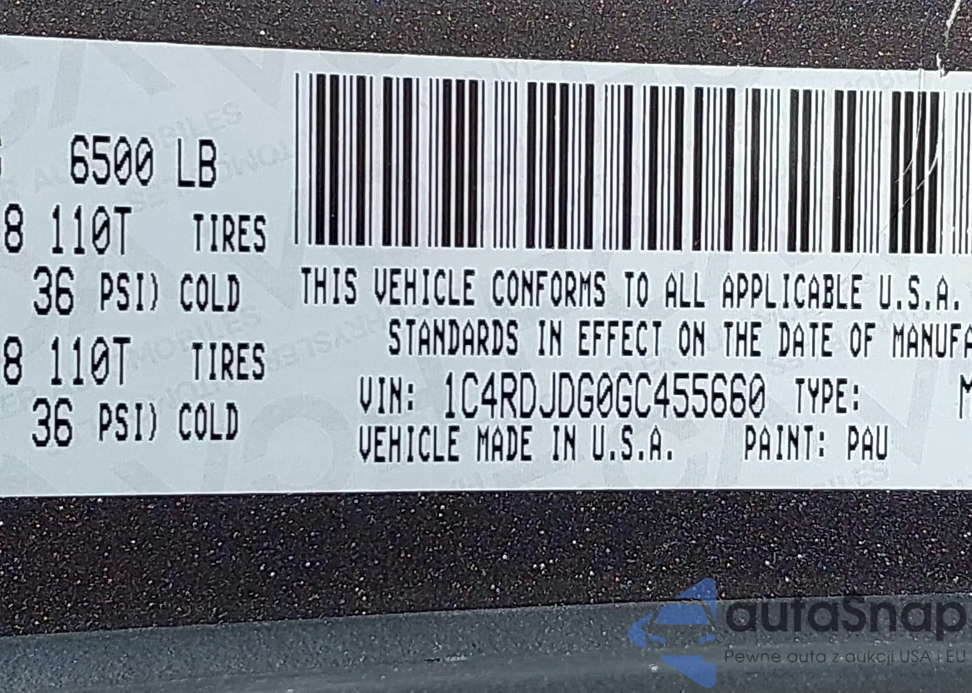 • VIN 1C4RDJDG0GC455660