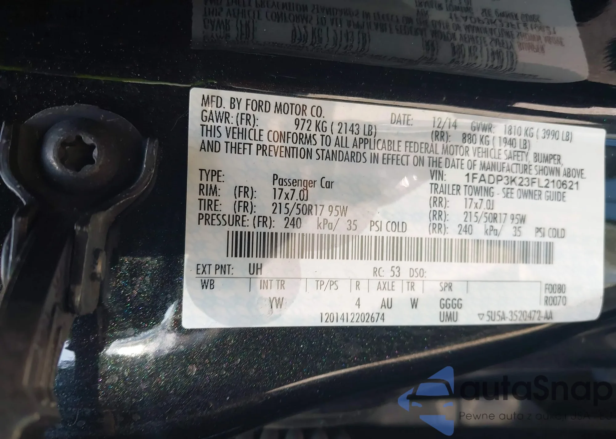 LOT: 42723649 VIN: 1FADP3K23FL210621