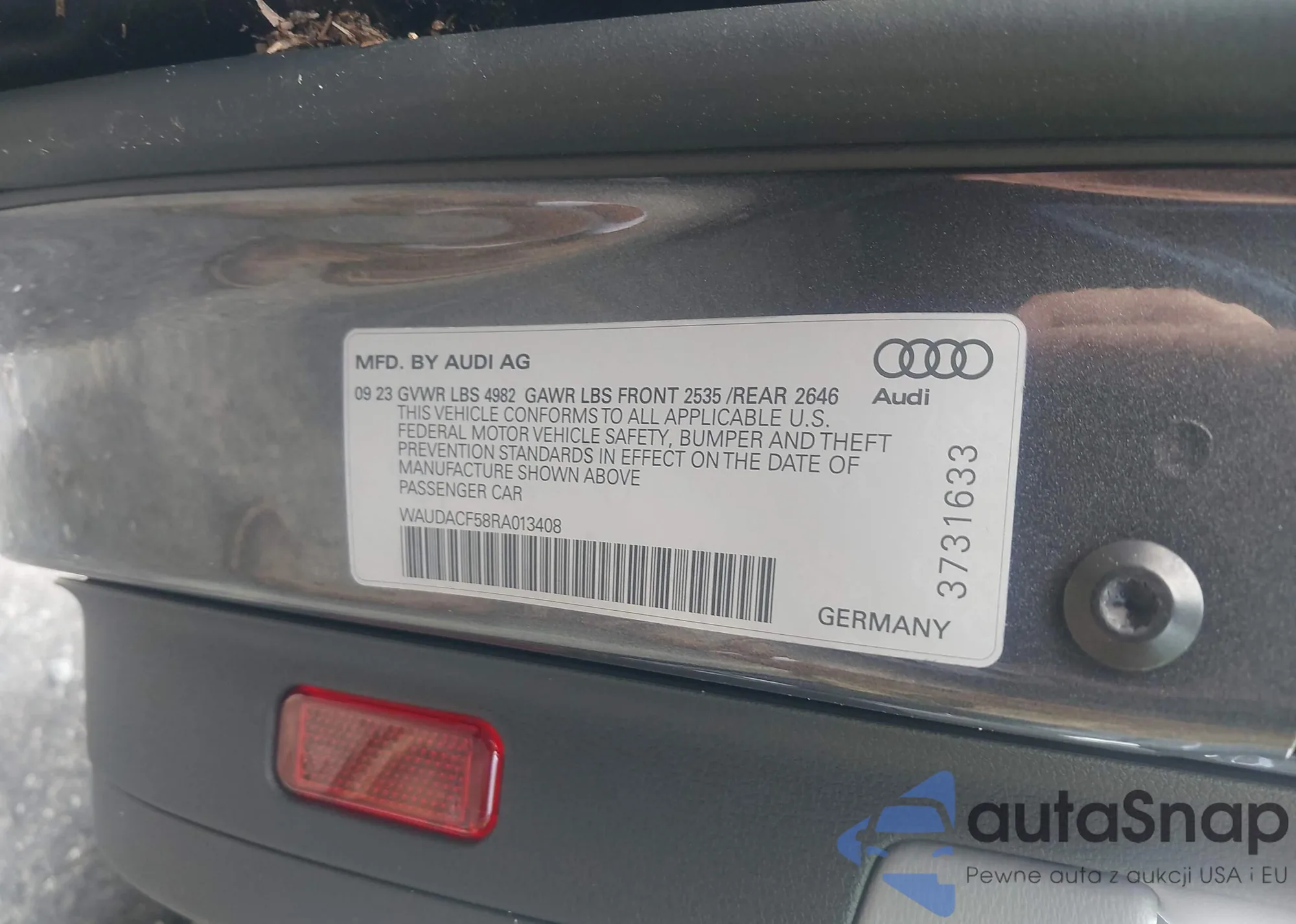 • VIN WAUDACF58RA013408