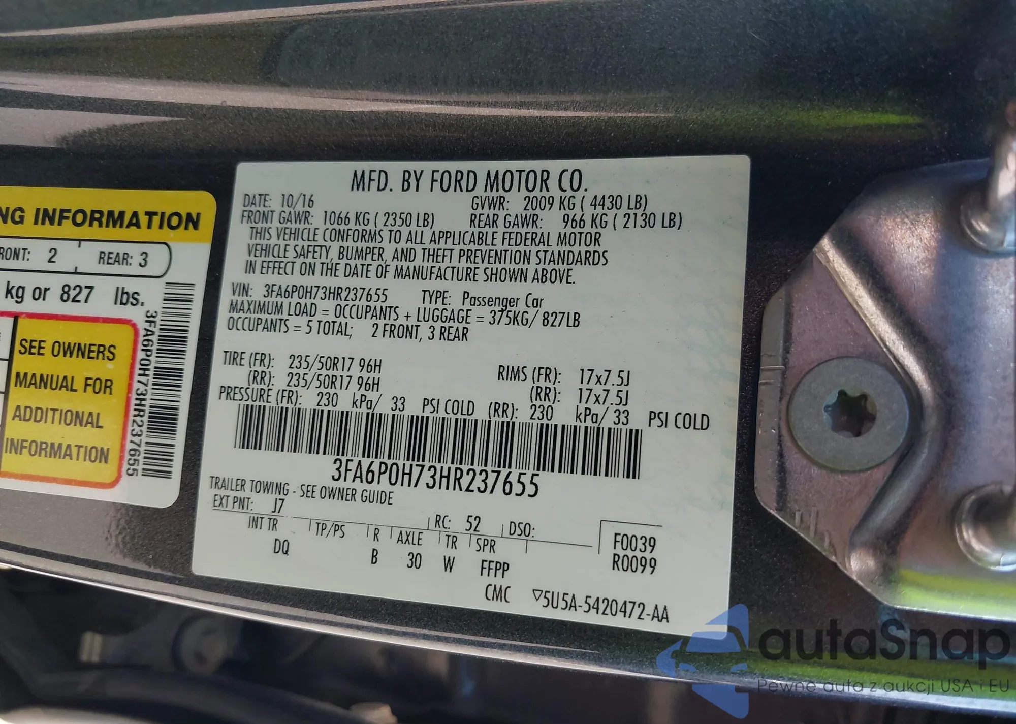 • VIN 3FA6P0H73HR237655