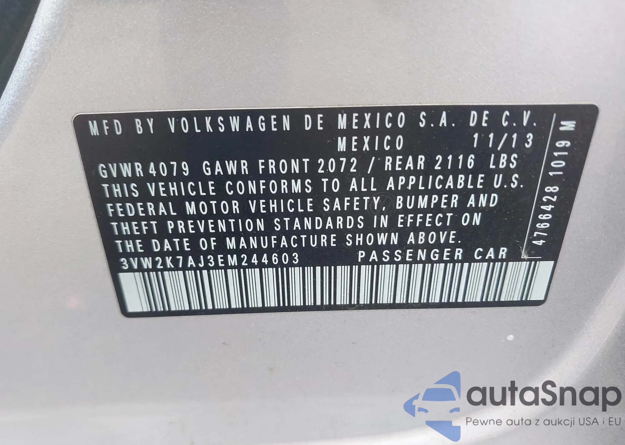 • VIN 3VW2K7AJ3EM244603