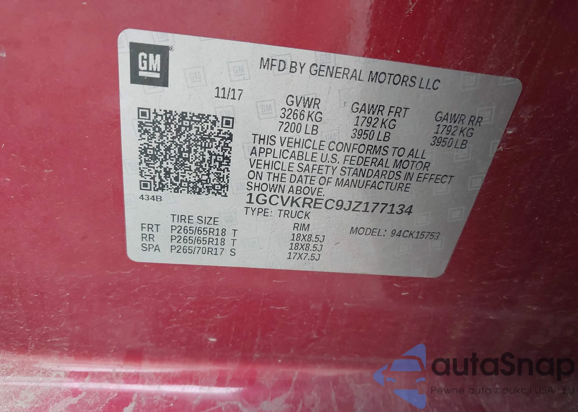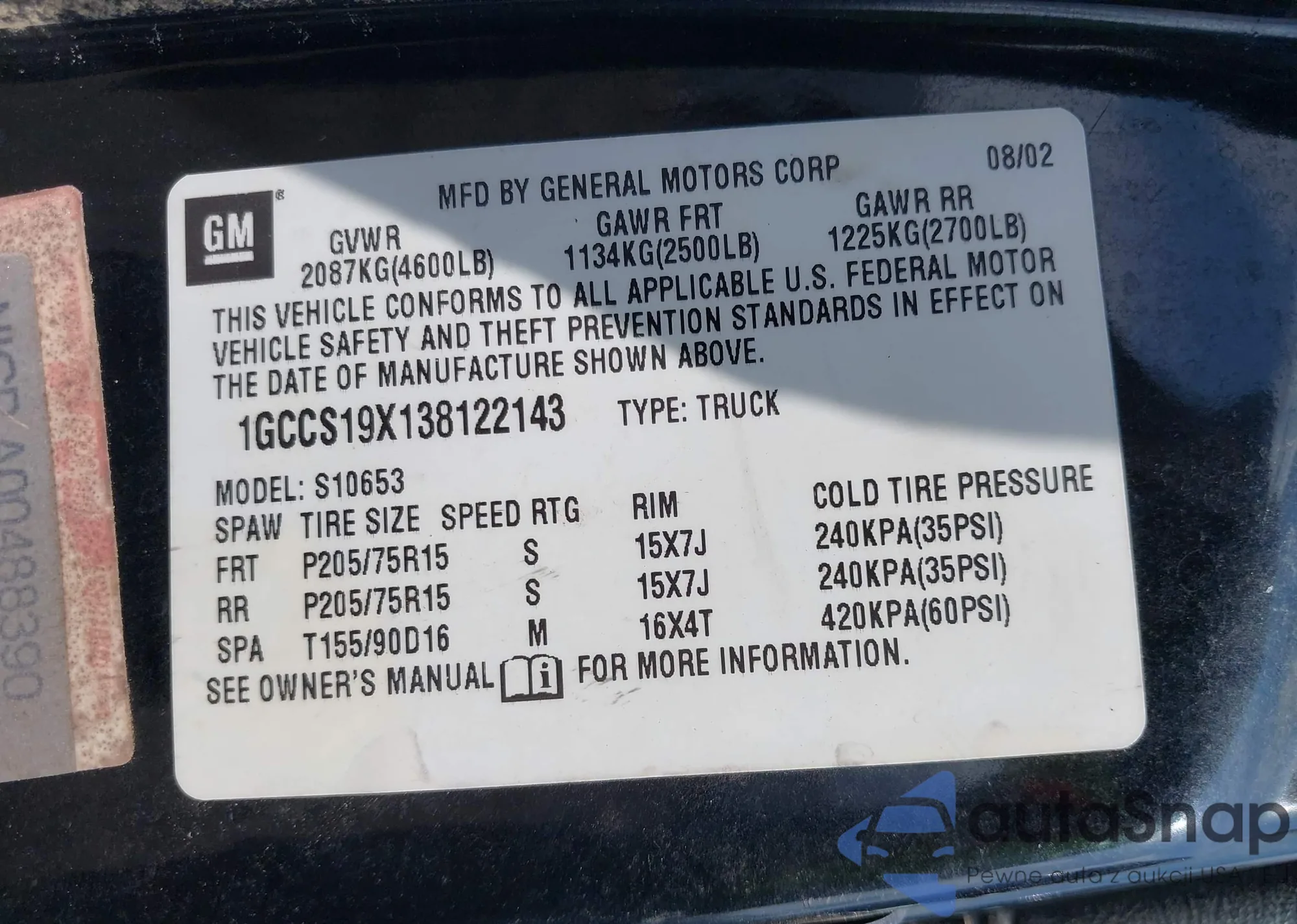 LOT: 42865105 VIN: 1GCCS19X138122143