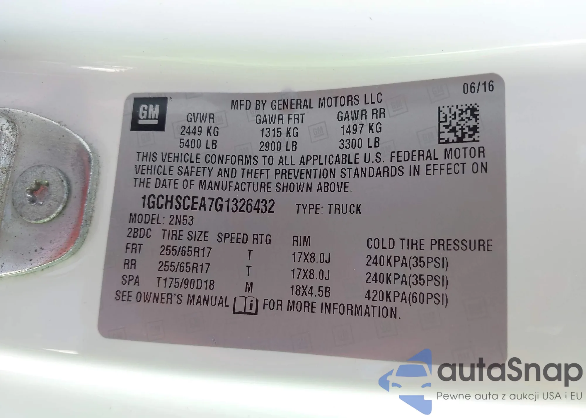 LOT: 42853050 VIN: 1GCHSCEA7G1326432