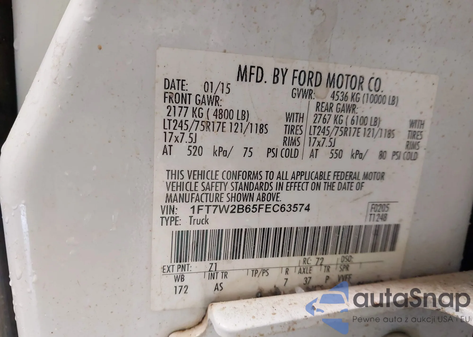• VIN 1FT7W2B65FEC63574