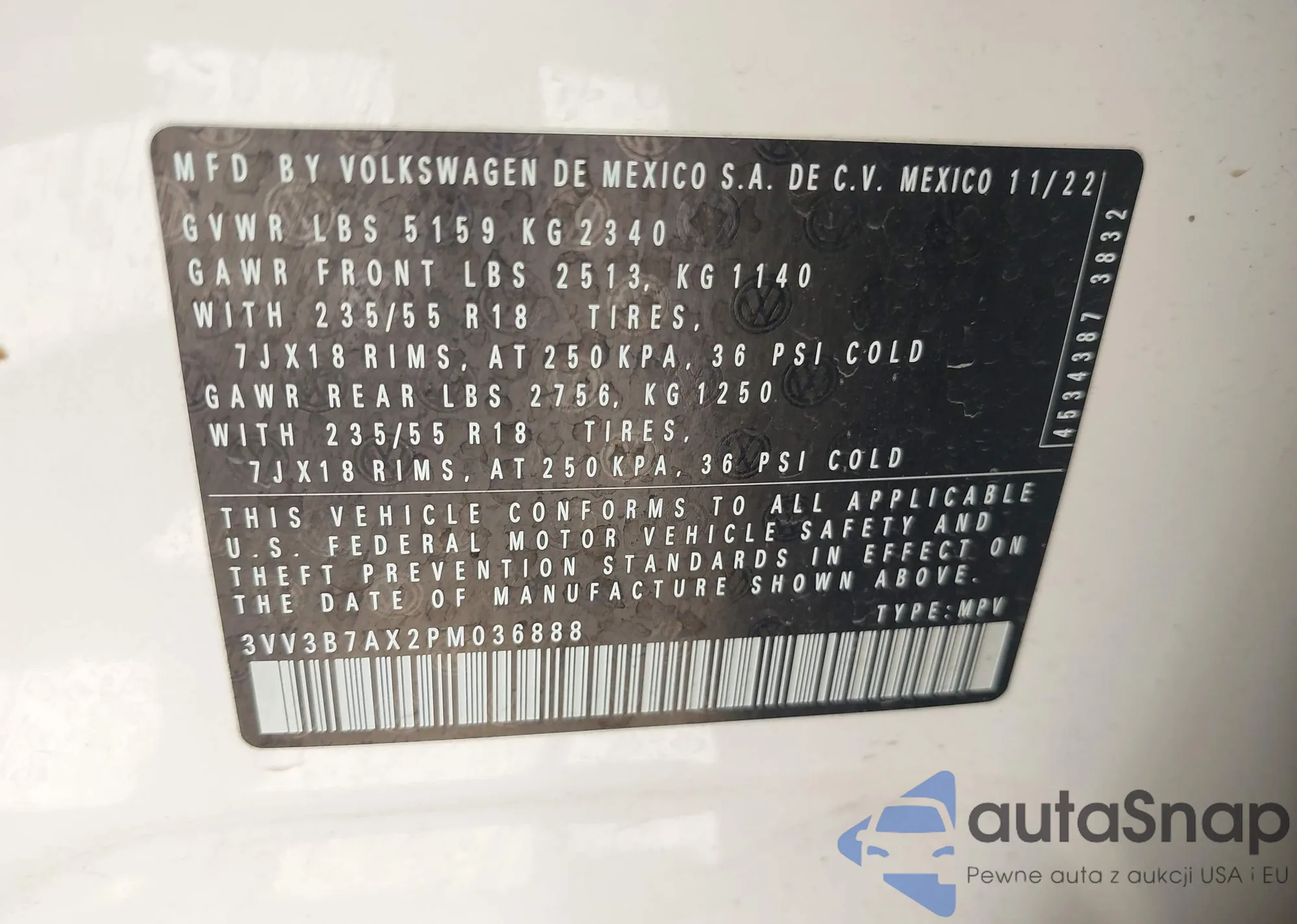 • VIN 3VV3B7AX2PM036888