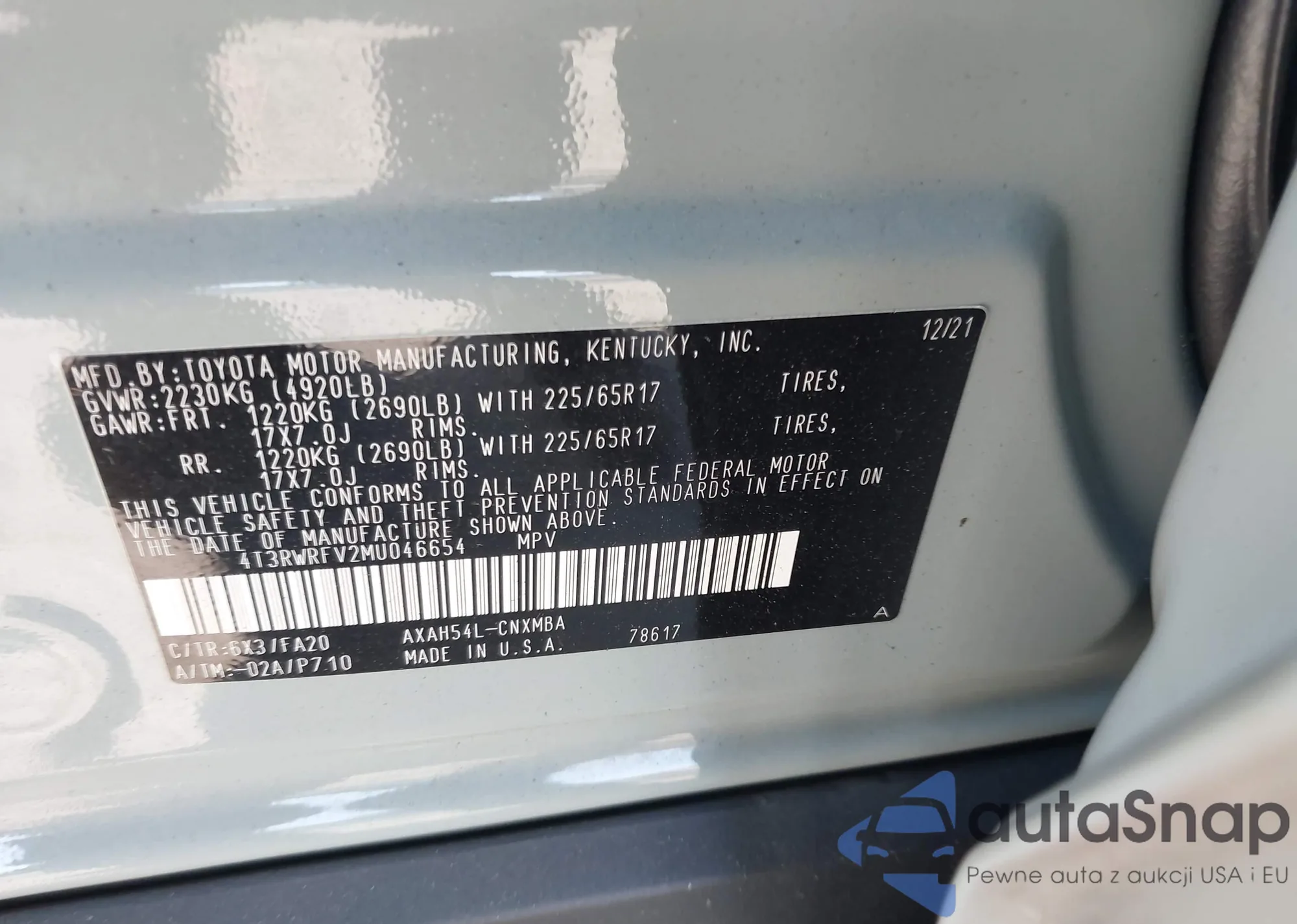 LOT: 42852130 VIN: 4T3RWRFV2MU046654