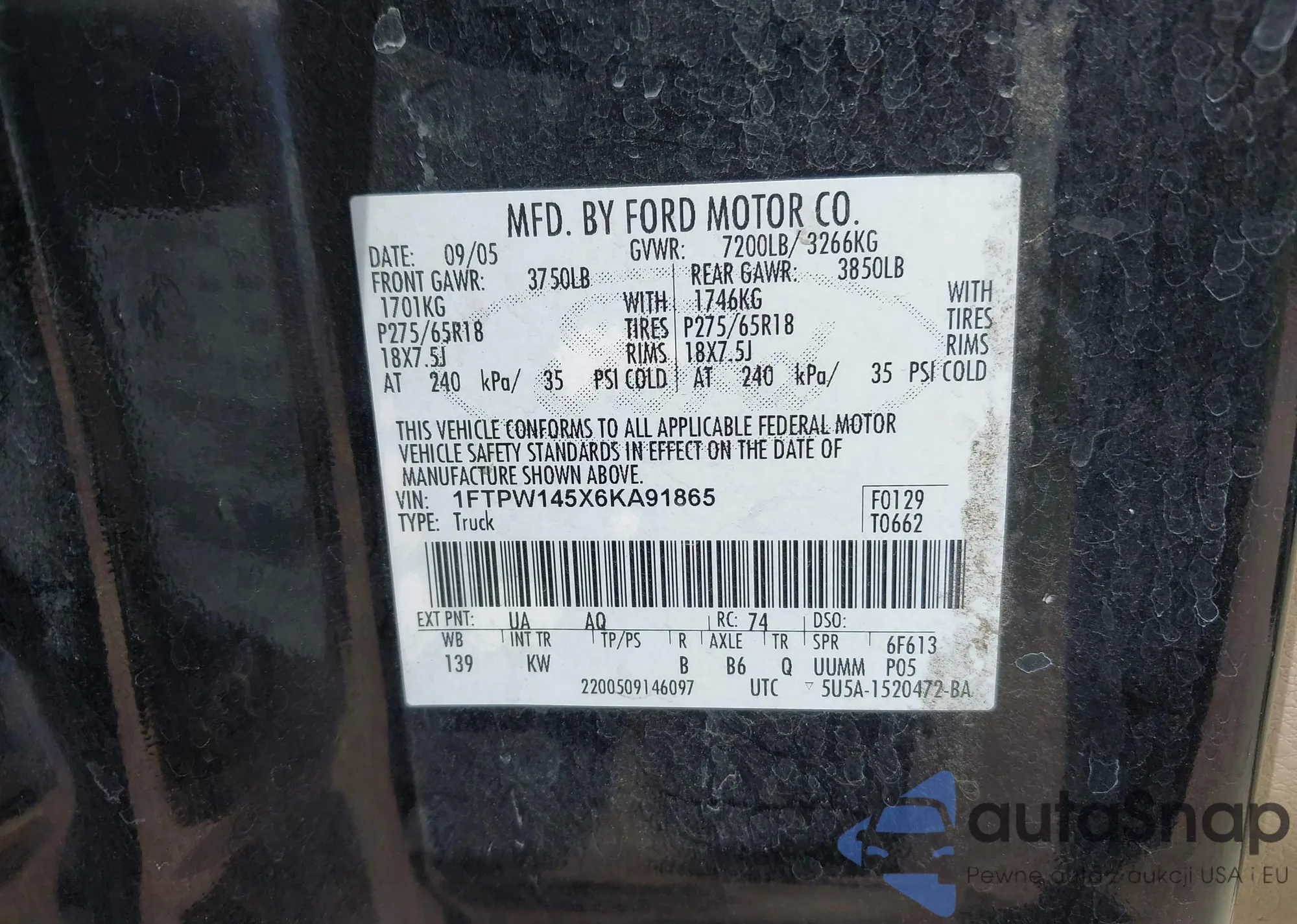 • VIN 1FTPW145X6KA91865