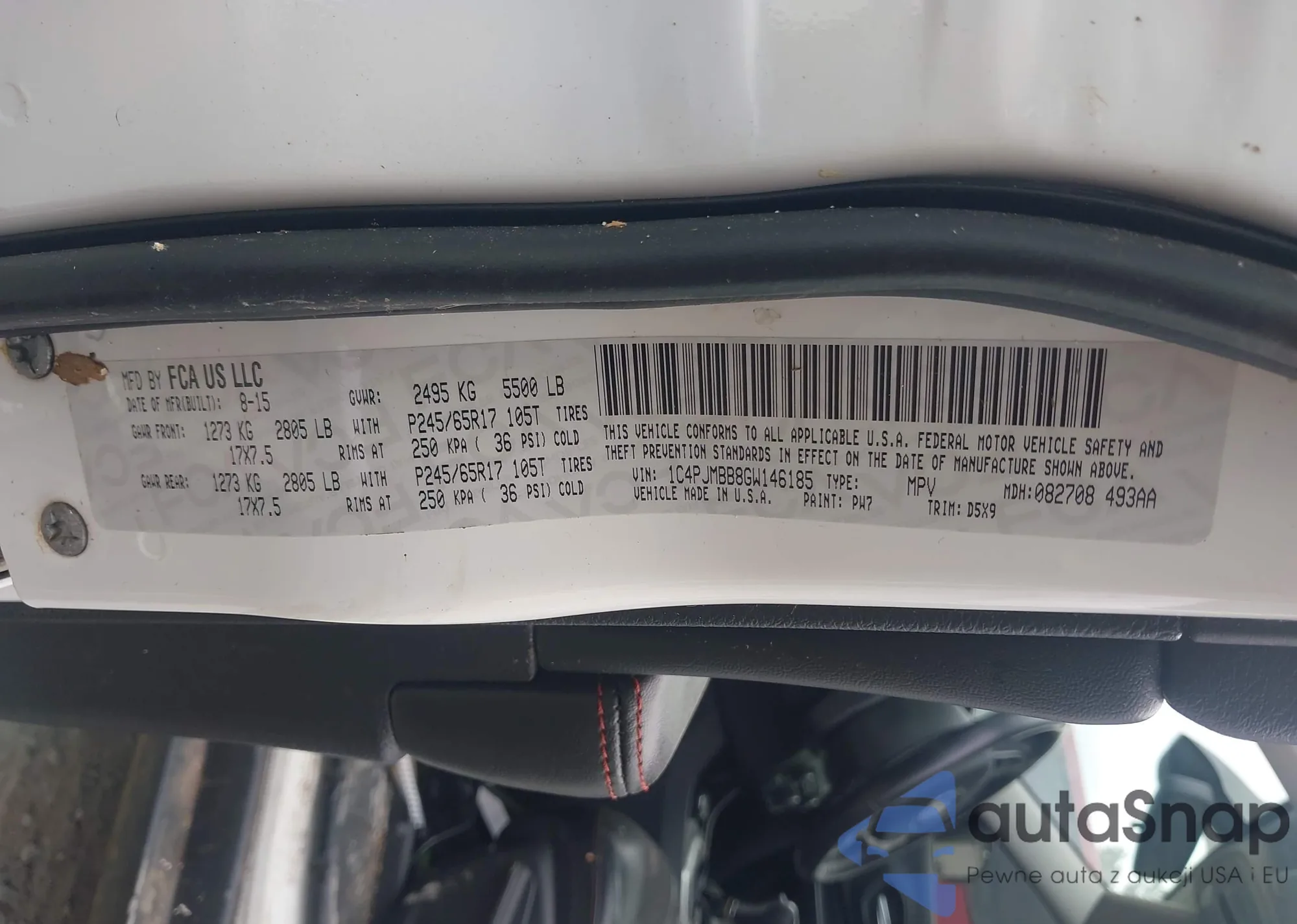 LOT: 42870077 VIN: 1C4PJMBB8GW146185