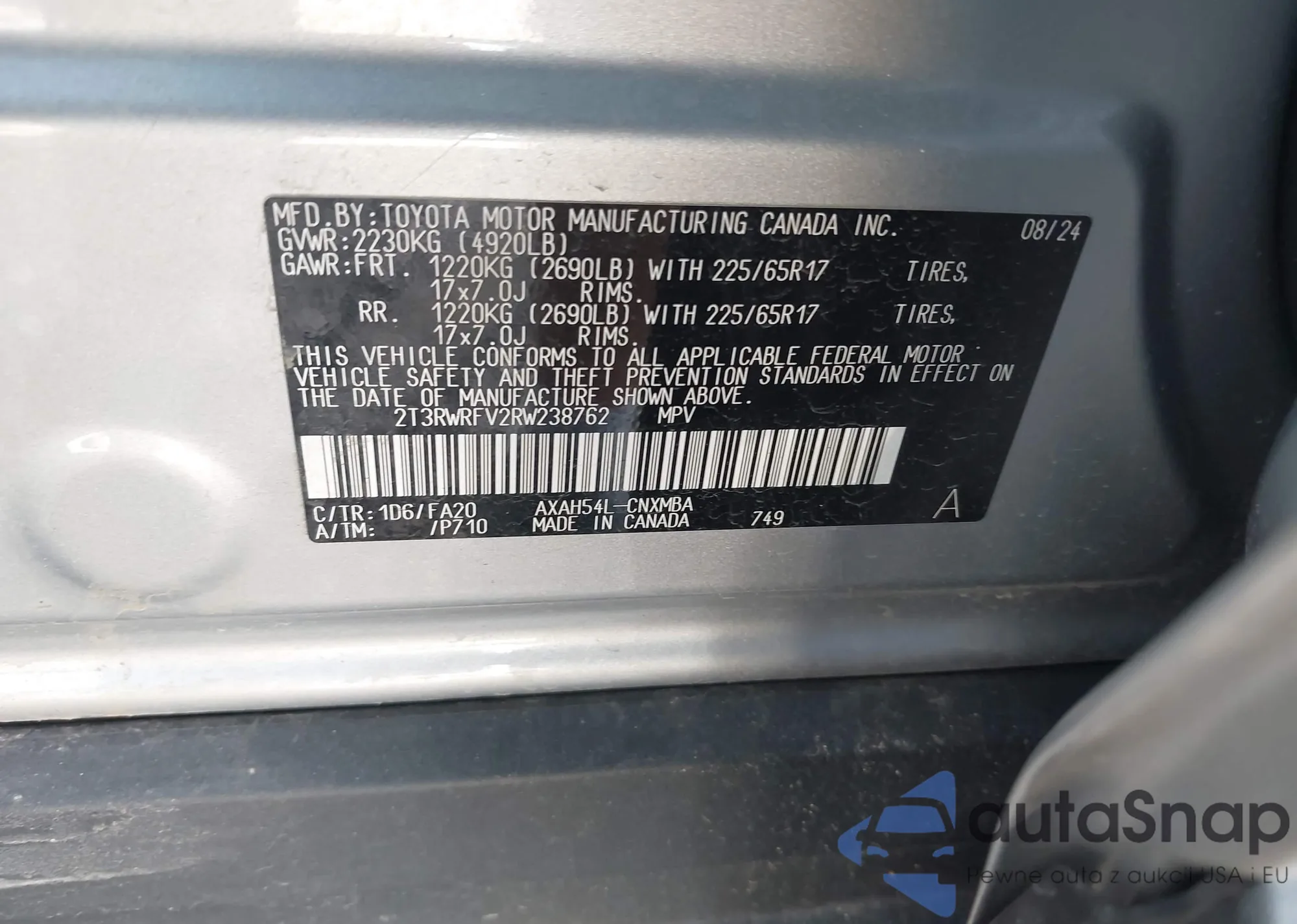 • VIN 2T3RWRFV2RW238762
