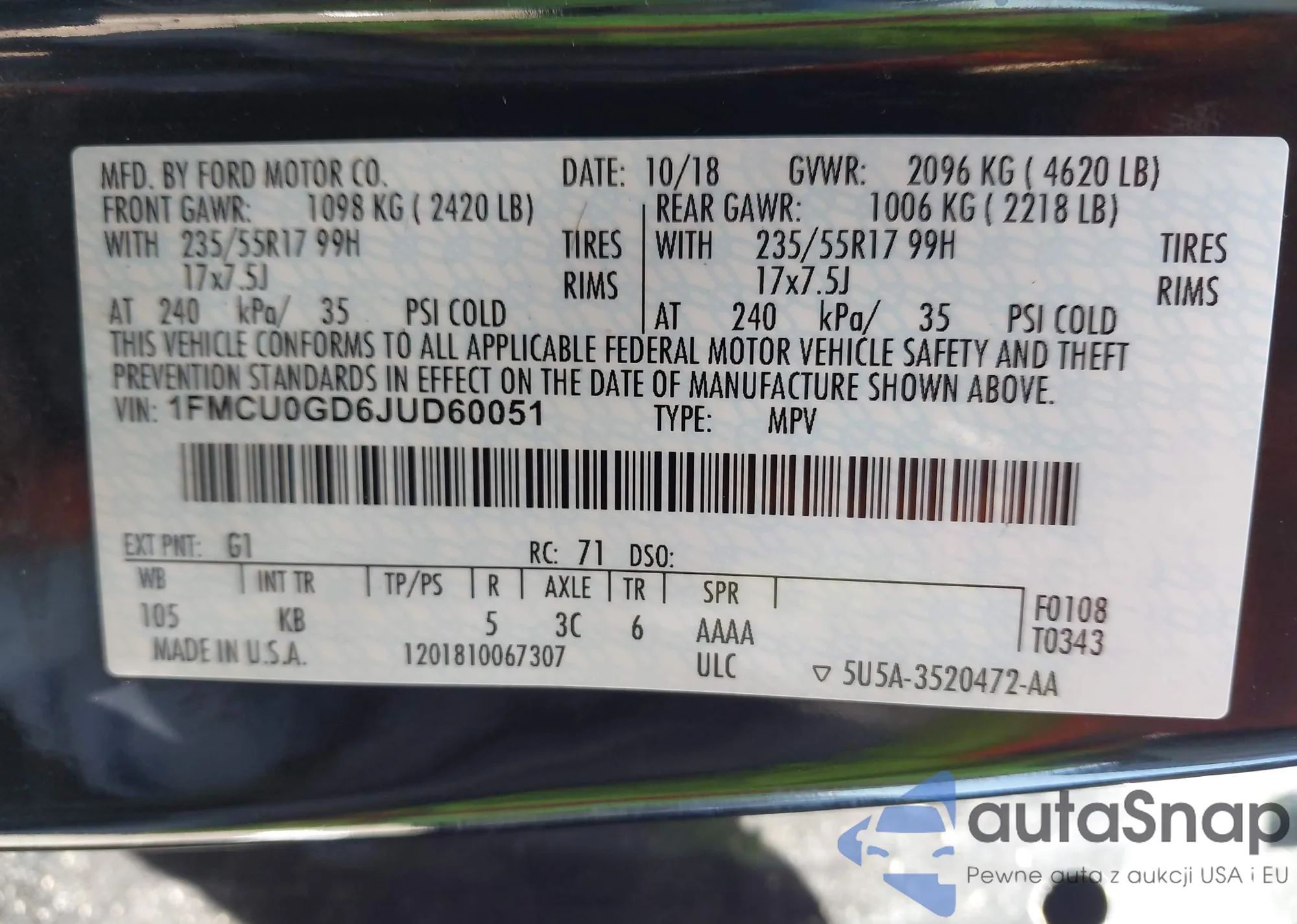 • VIN 1FMCU0GD6JUD60051