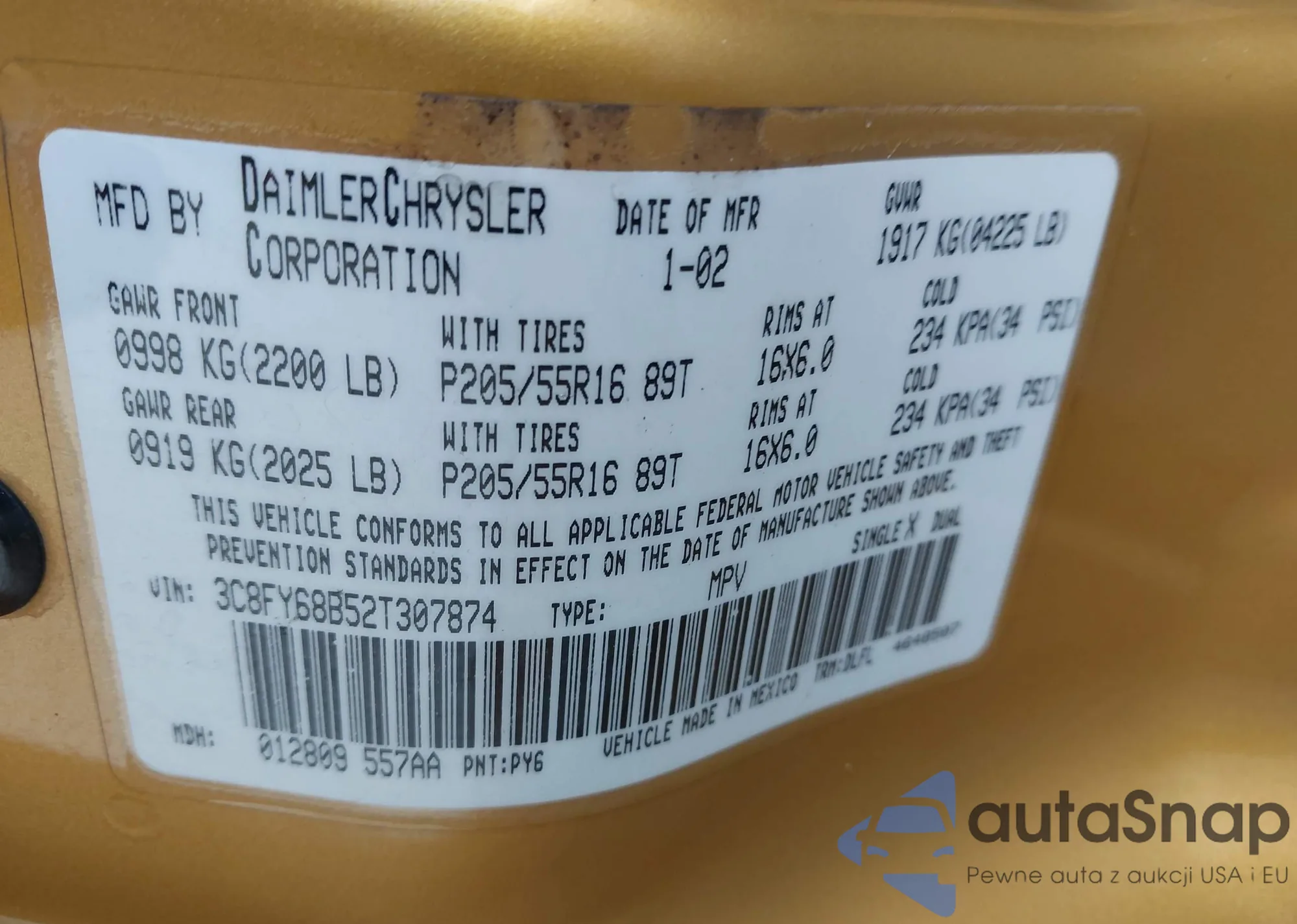 LOT: 42875106 VIN: 3C8FY68B52T307874