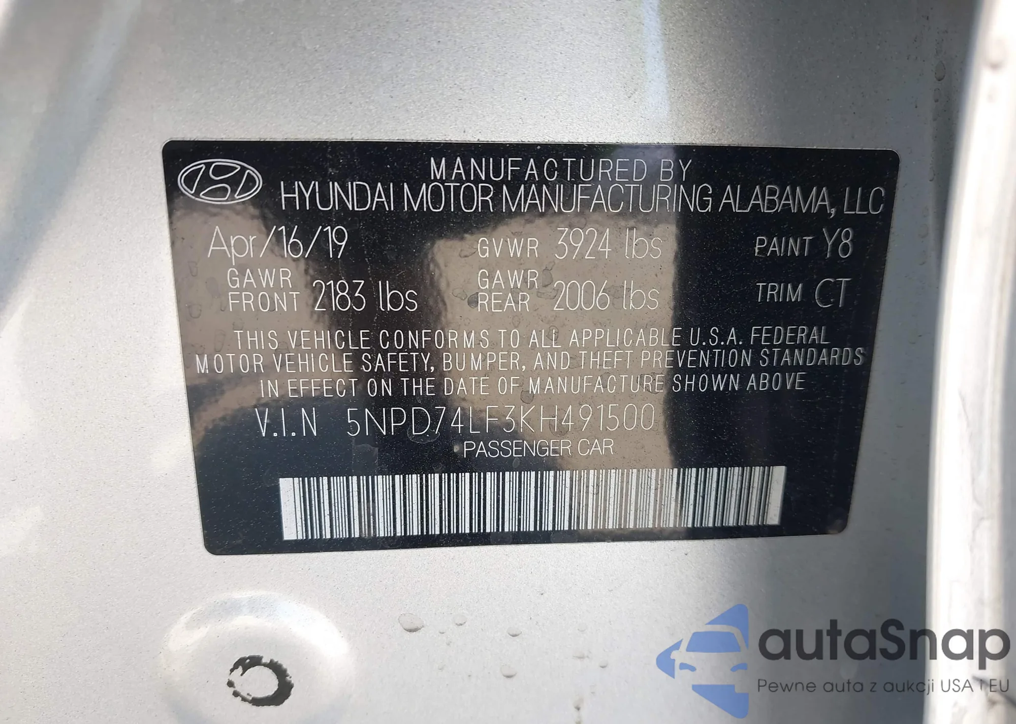 LOT: 42612862 VIN: 5NPD74LF3KH491500