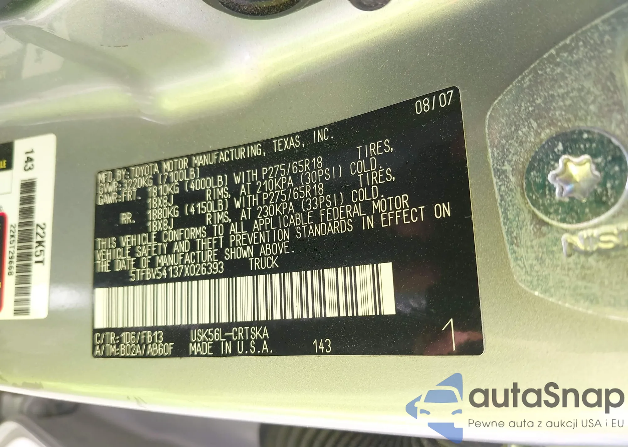 LOT: 42796427 VIN: 5TFBV54137X026393