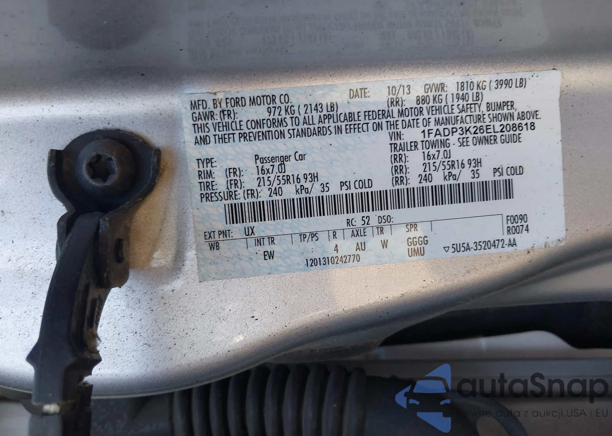 LOT: 42857969 VIN: 1FADP3K26EL208618