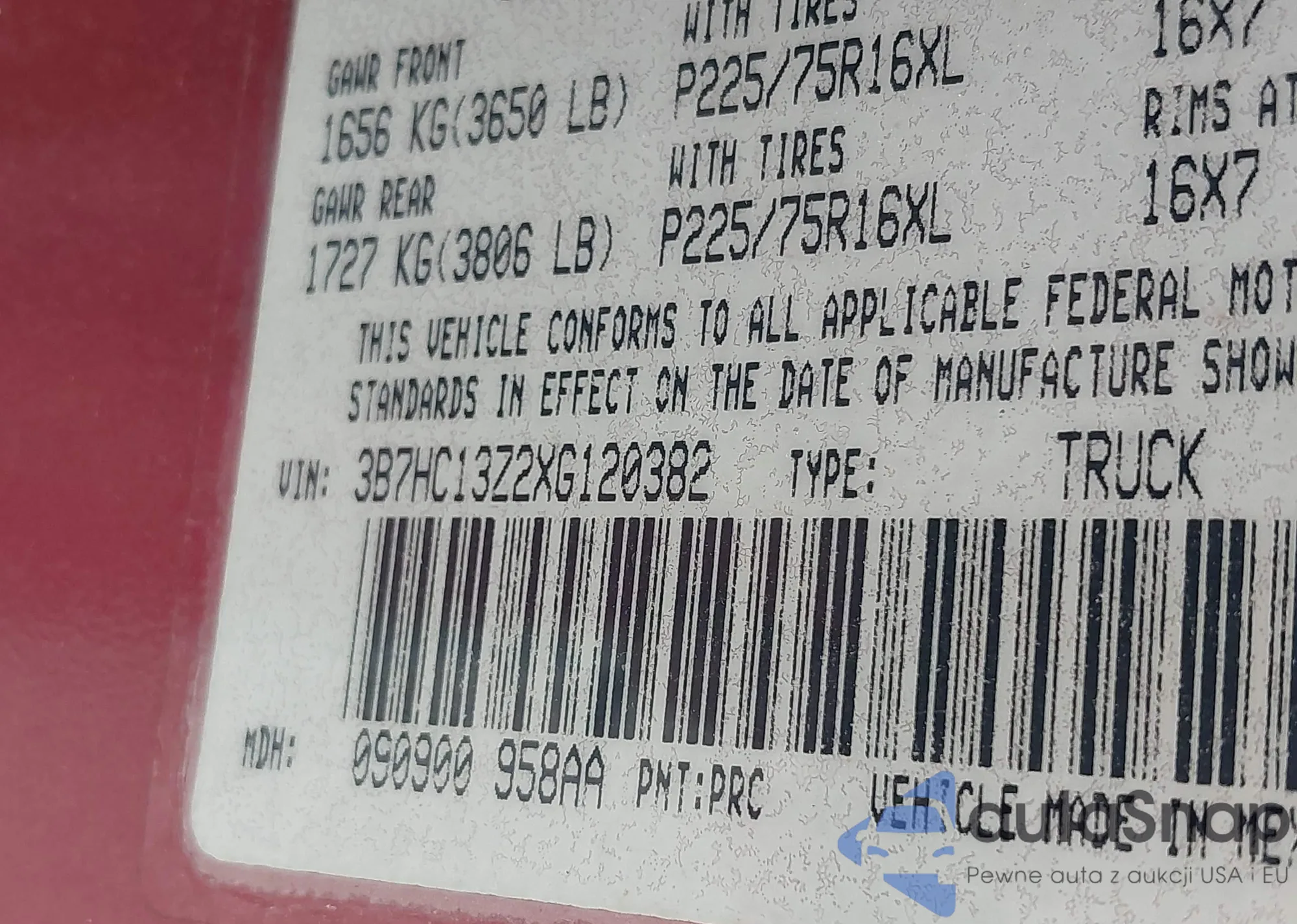 • VIN 3B7HC13Z2XG120382
