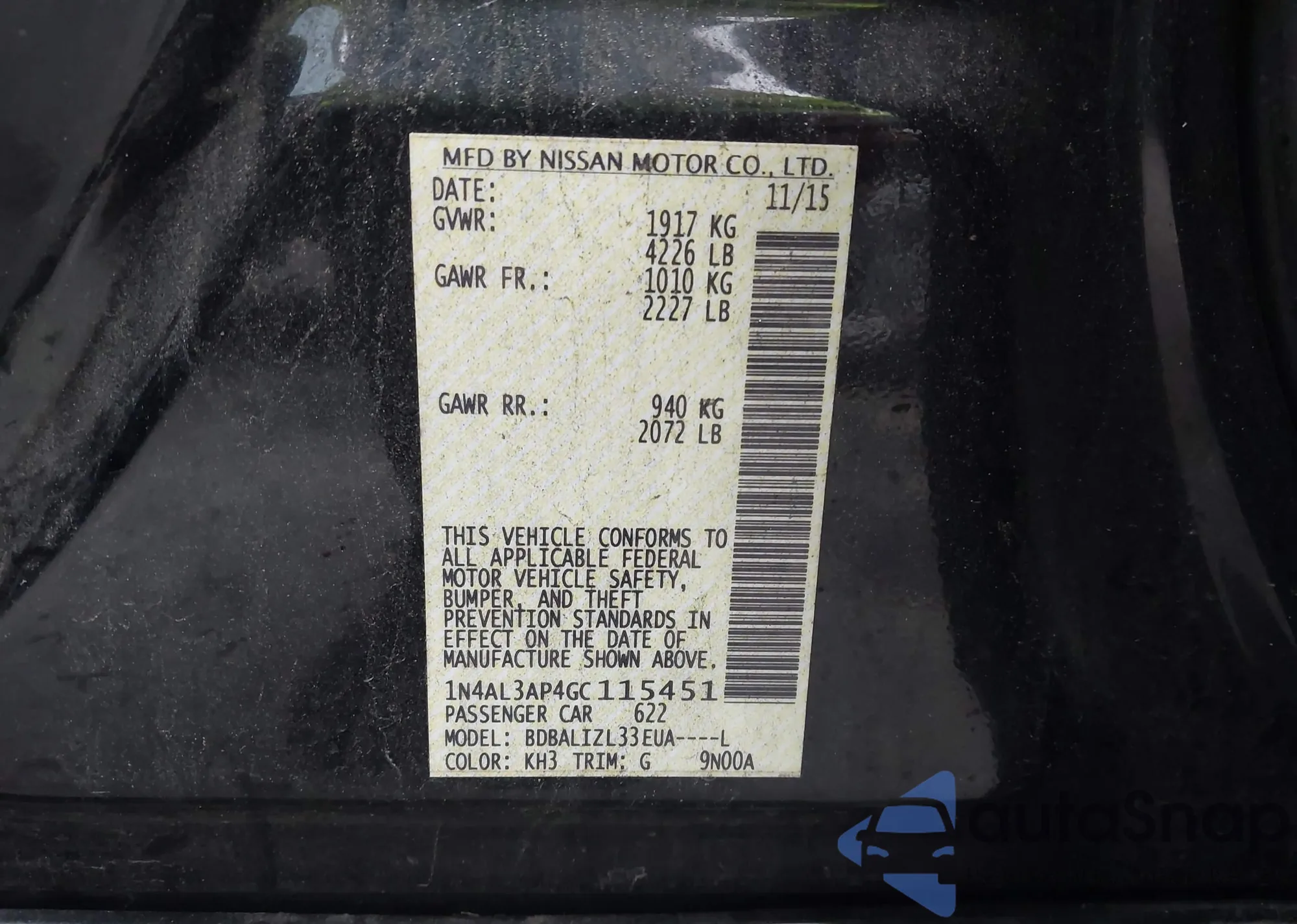 • VIN 3KPC24A6XLE107859