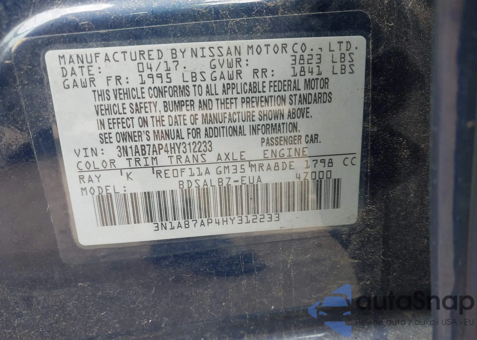 • VIN 3N1AB7AP4HY312233