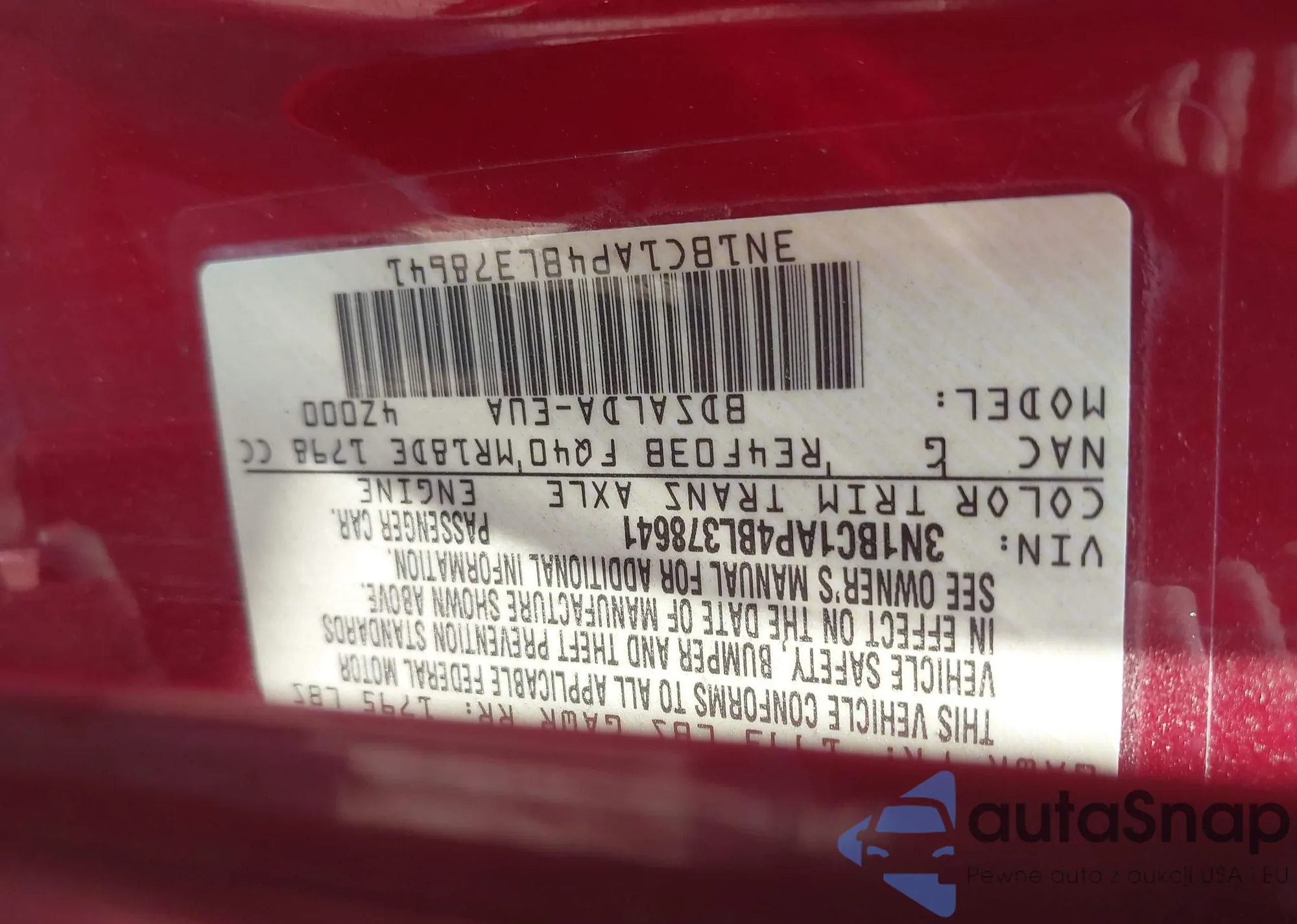 • VIN 3N1BC1AP4BL378641