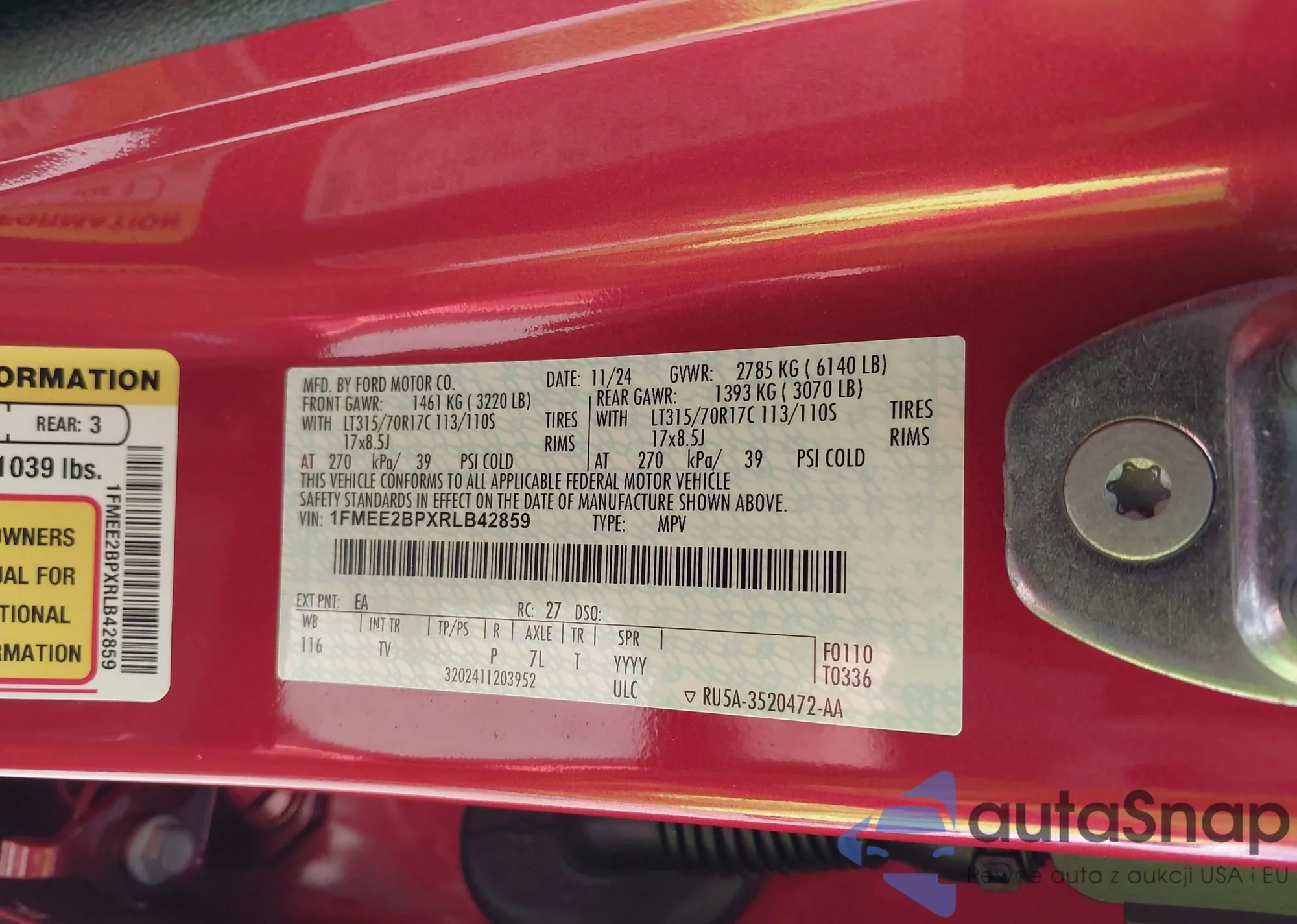 LOT: 42767610 VIN: 1FMEE2BPXRLB42859