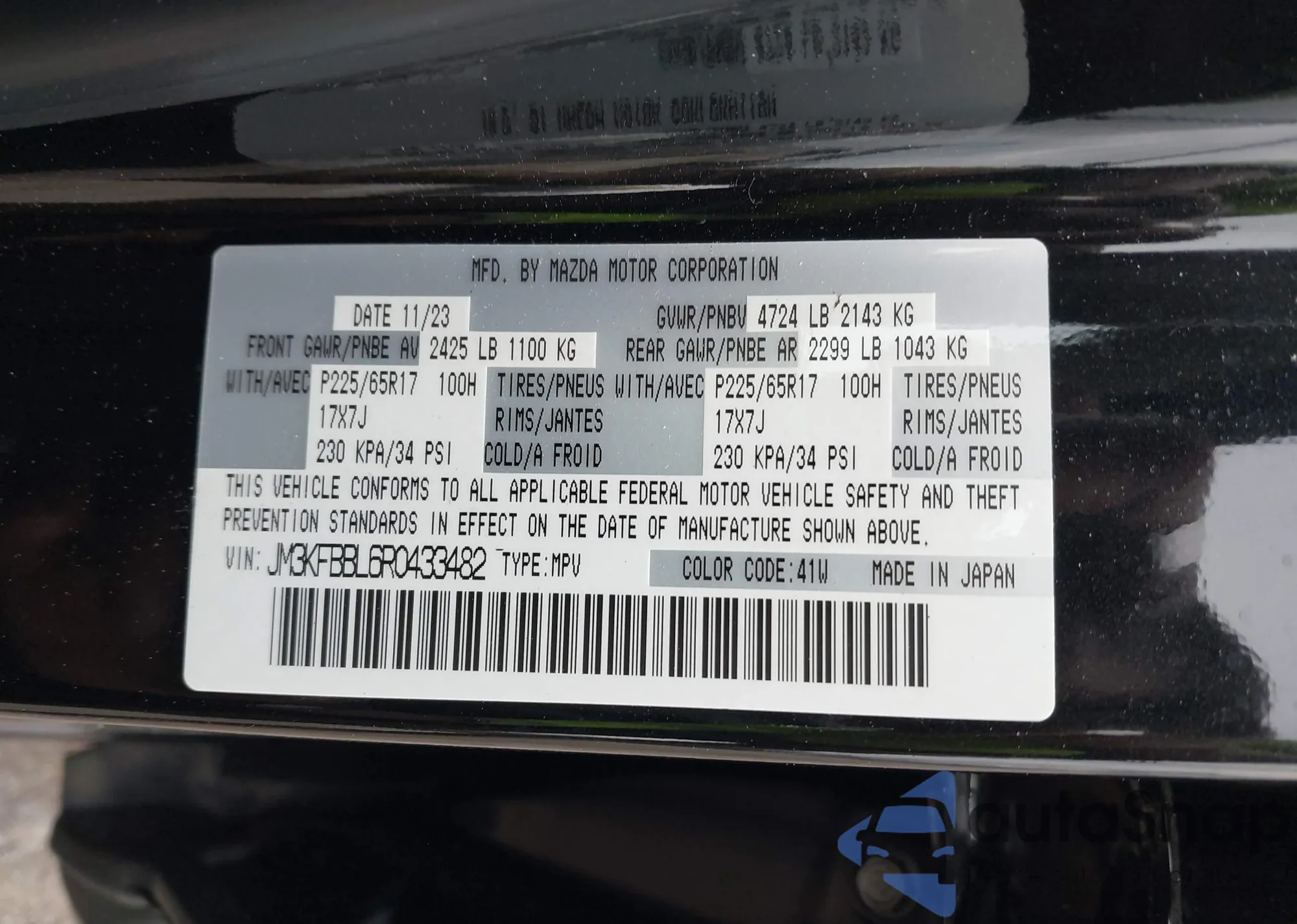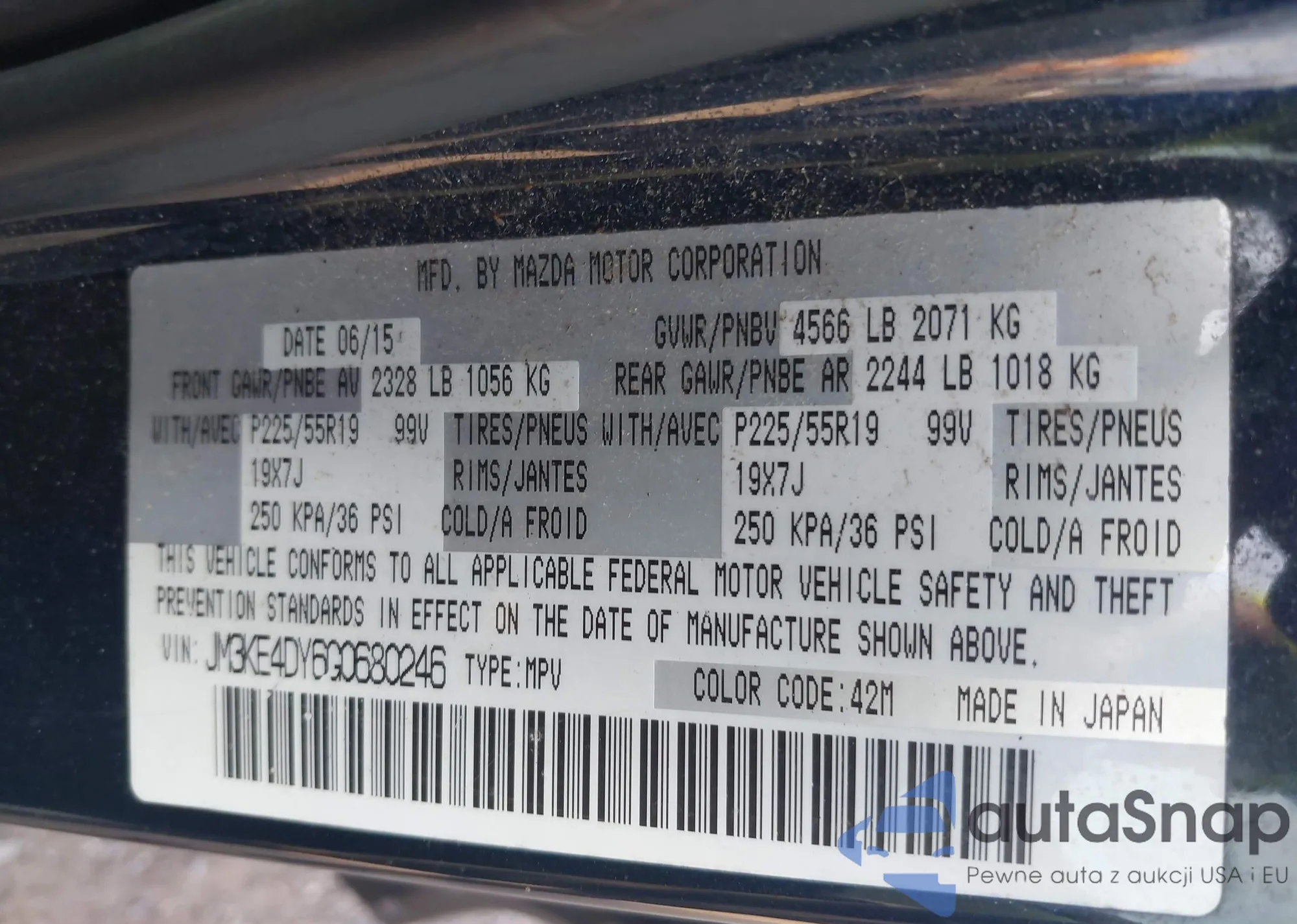 LOT: 42331508 VIN: JM3KFBBL6R0433482