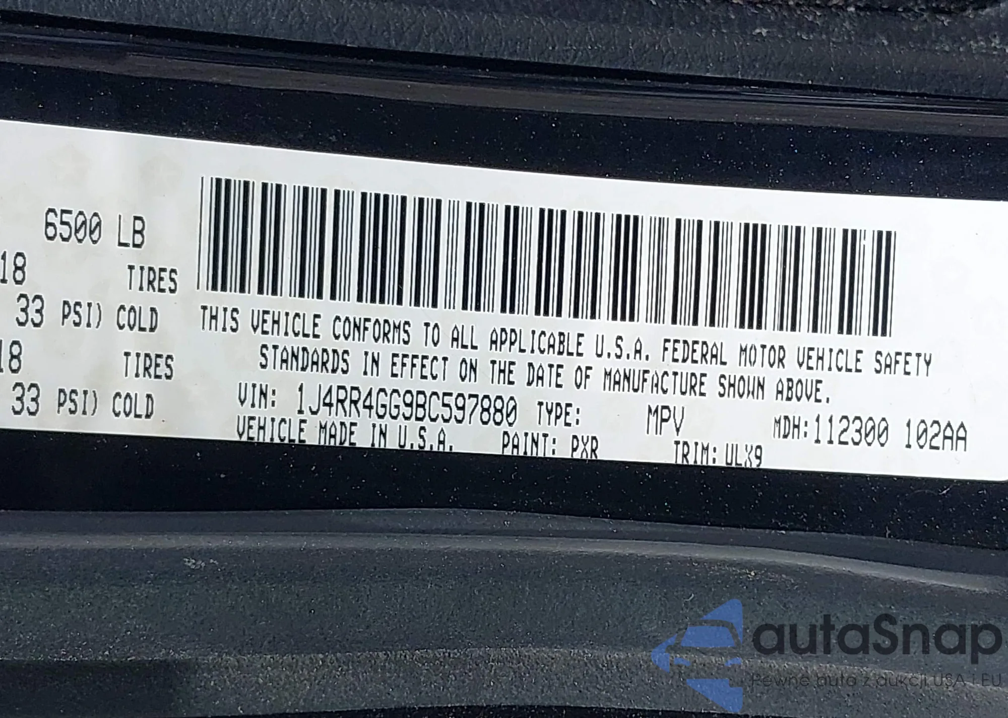 • VIN 1J4RR4GG9BC597880