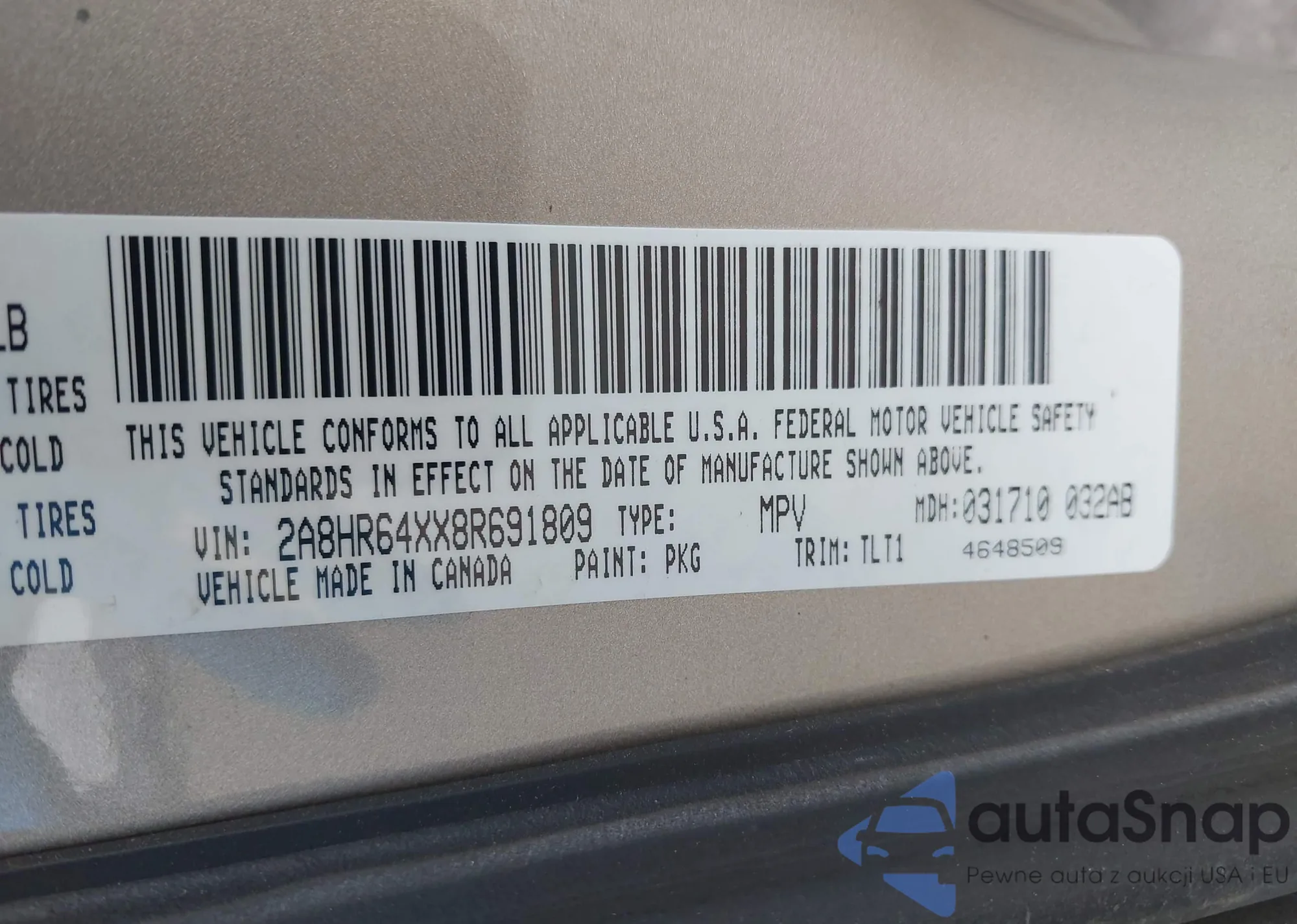• VIN 2A8HR64XX8R691809