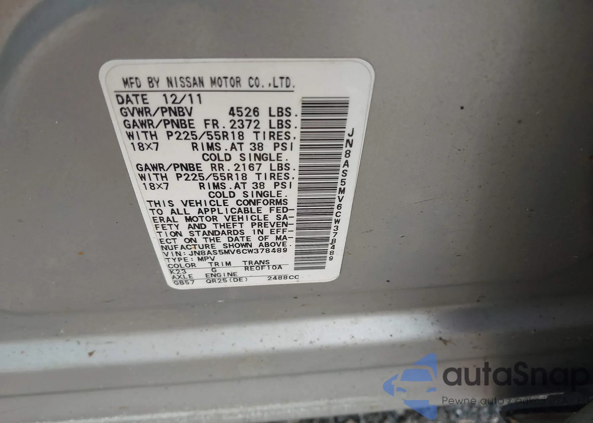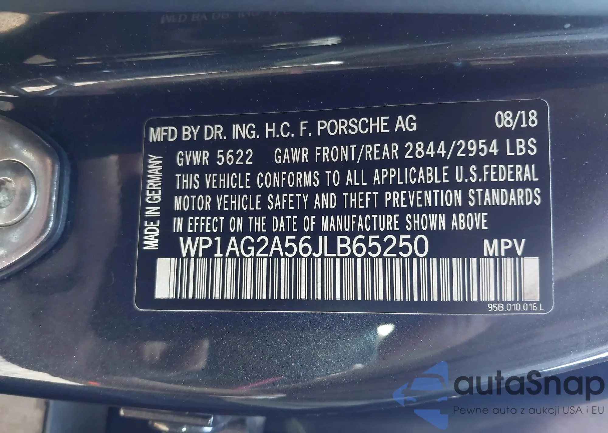 LOT: 42728452 VIN: WP1AG2A56JLB65250