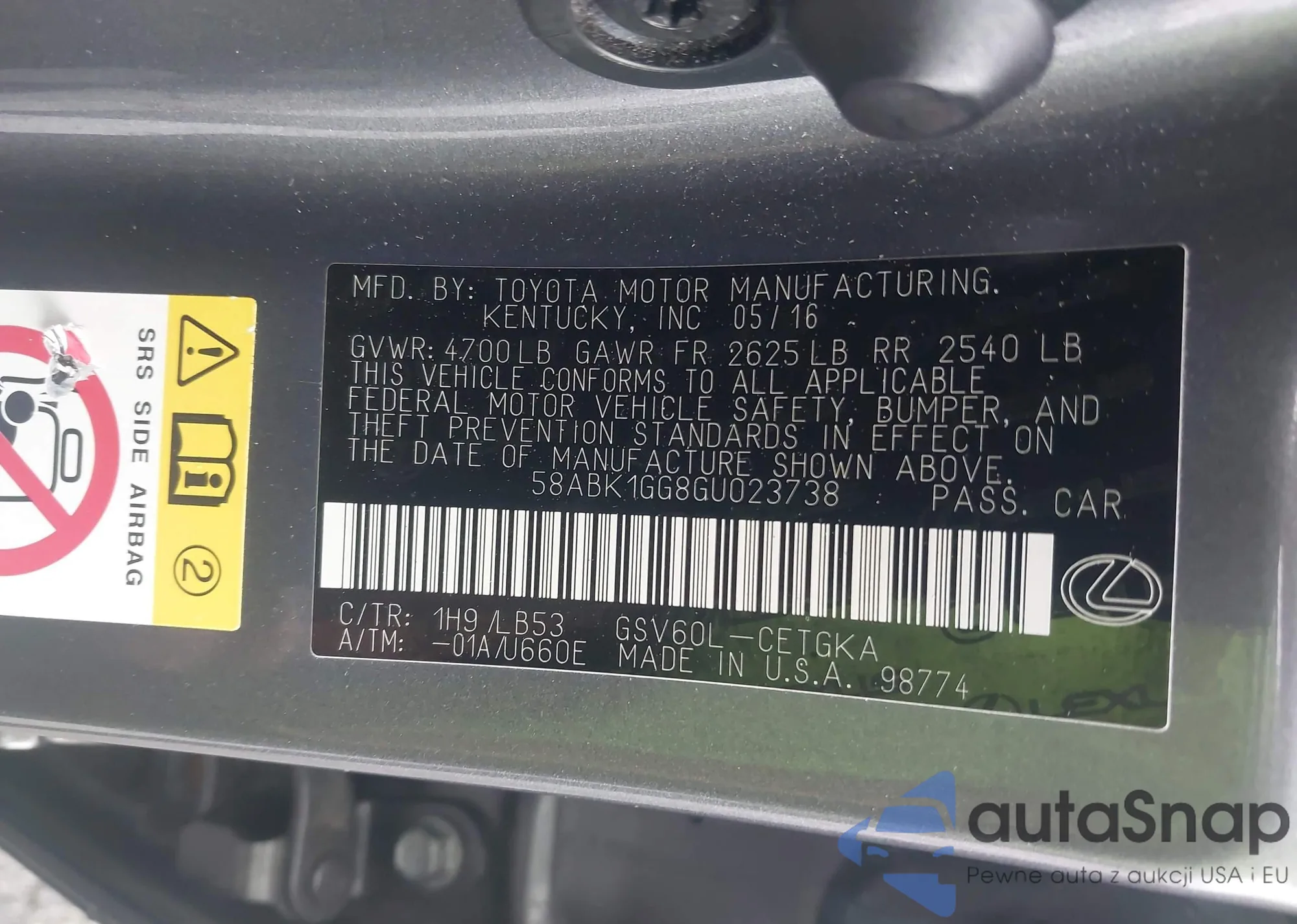 LOT: 42844122 VIN: 4T1BE32K33U744680