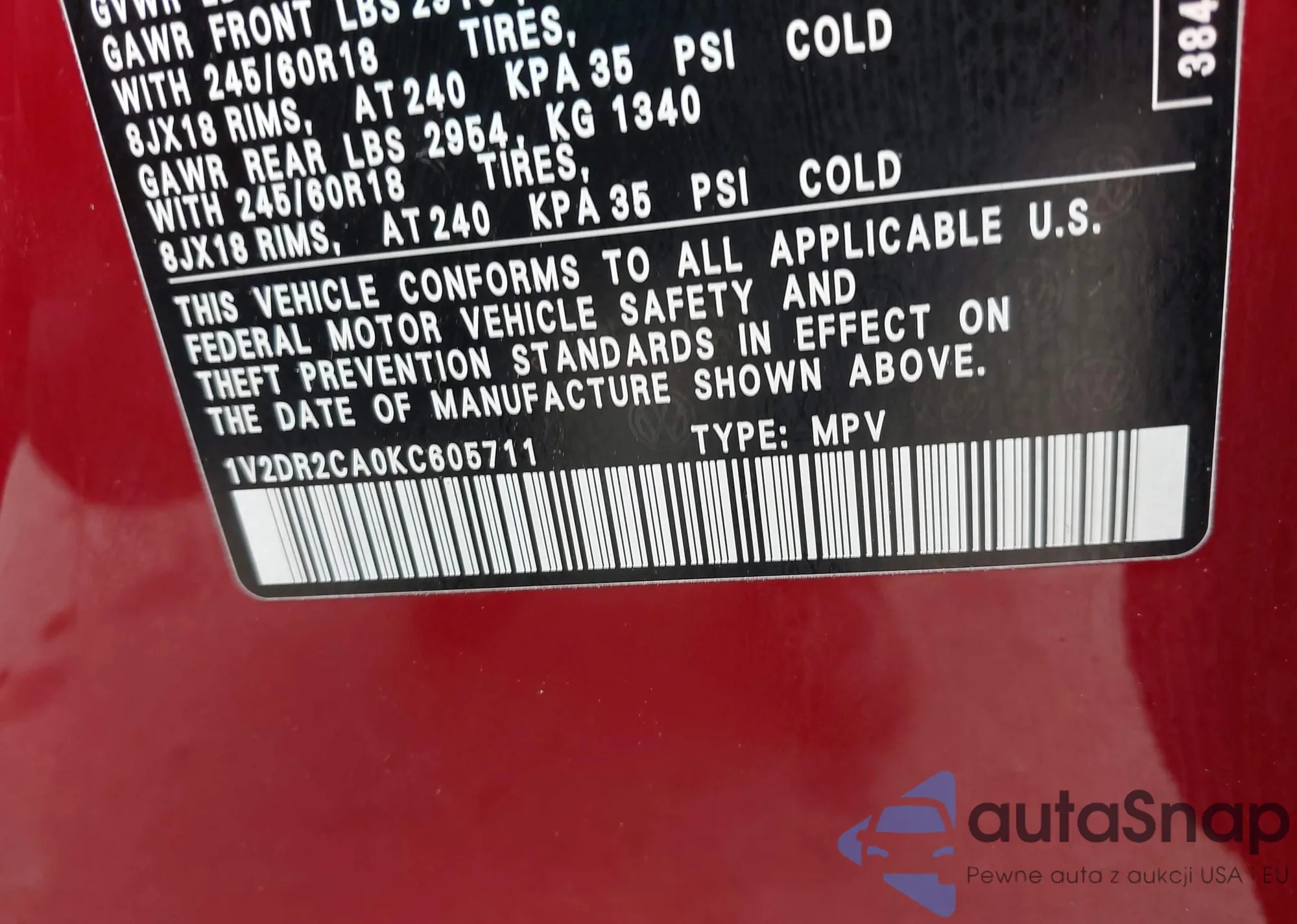 LOT: 42462386 VIN: 7JR102TL8MG113070
