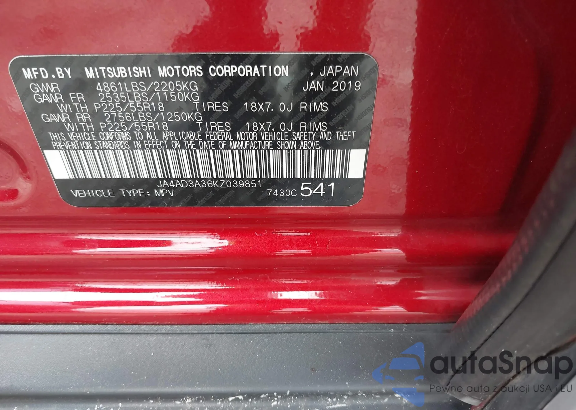LOT: 42439856 VIN: JA4AD3A36KZ039851