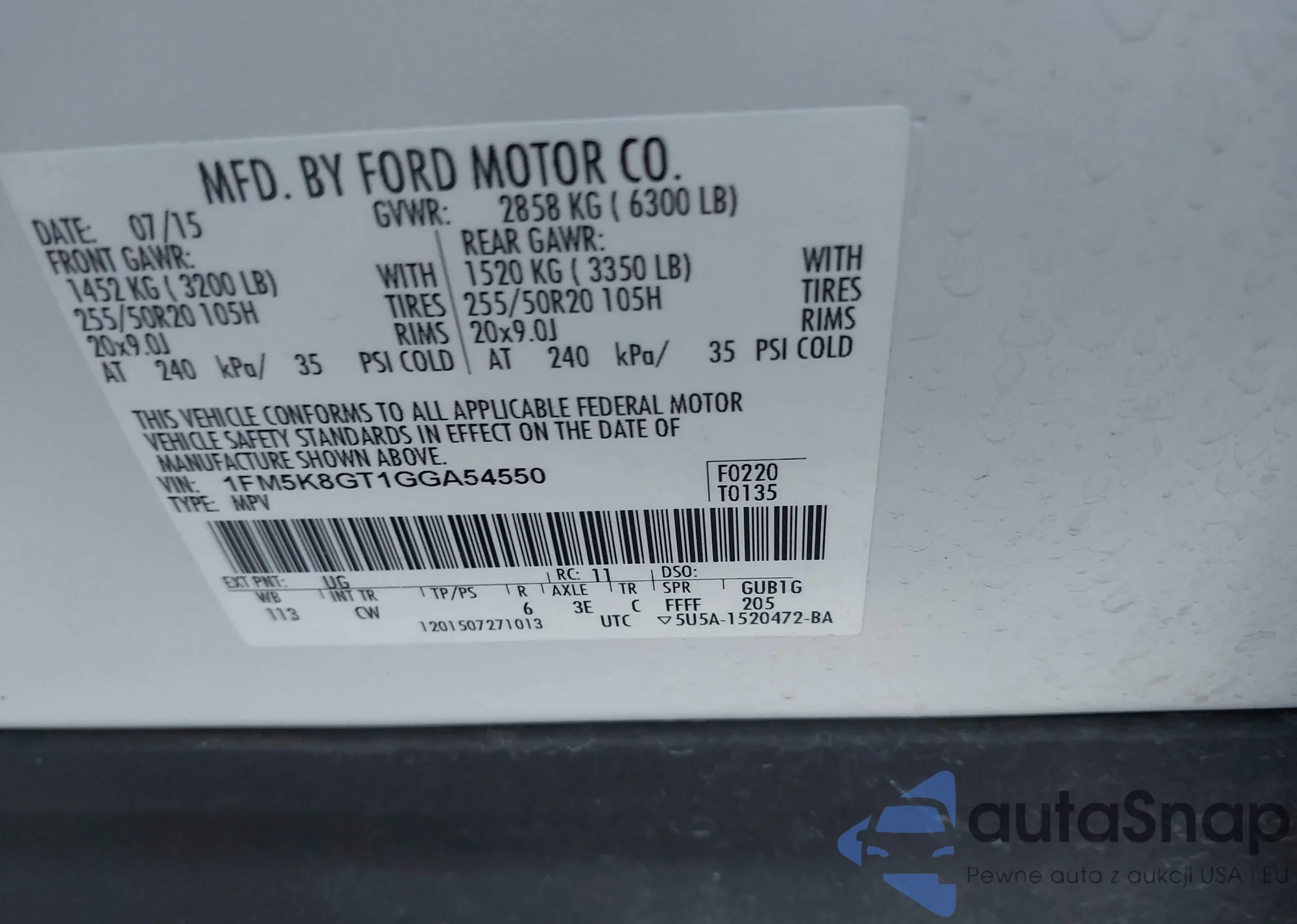 • VIN 1FM5K8GT1GGA54550