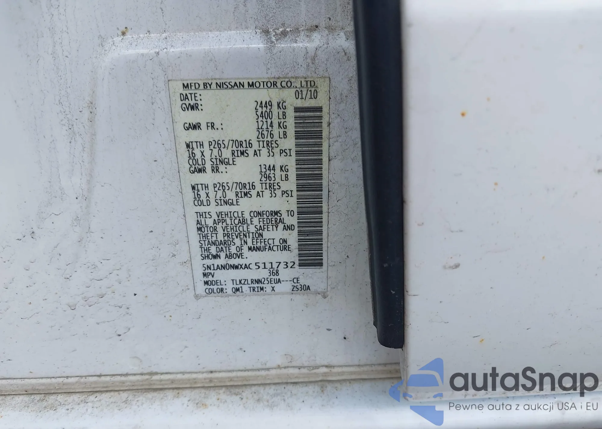 • VIN 5N1DR3AC7RC313345