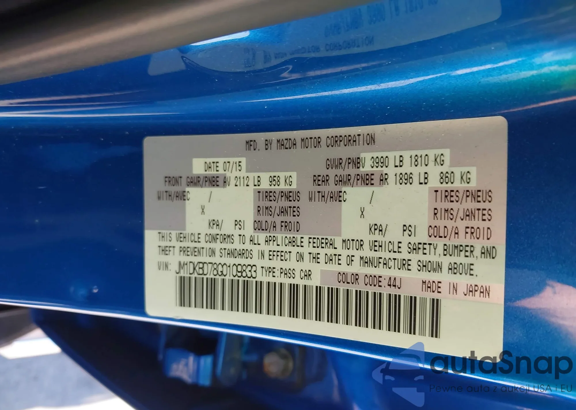 LOT: 42767759 VIN: JM1DKBD78G0109833