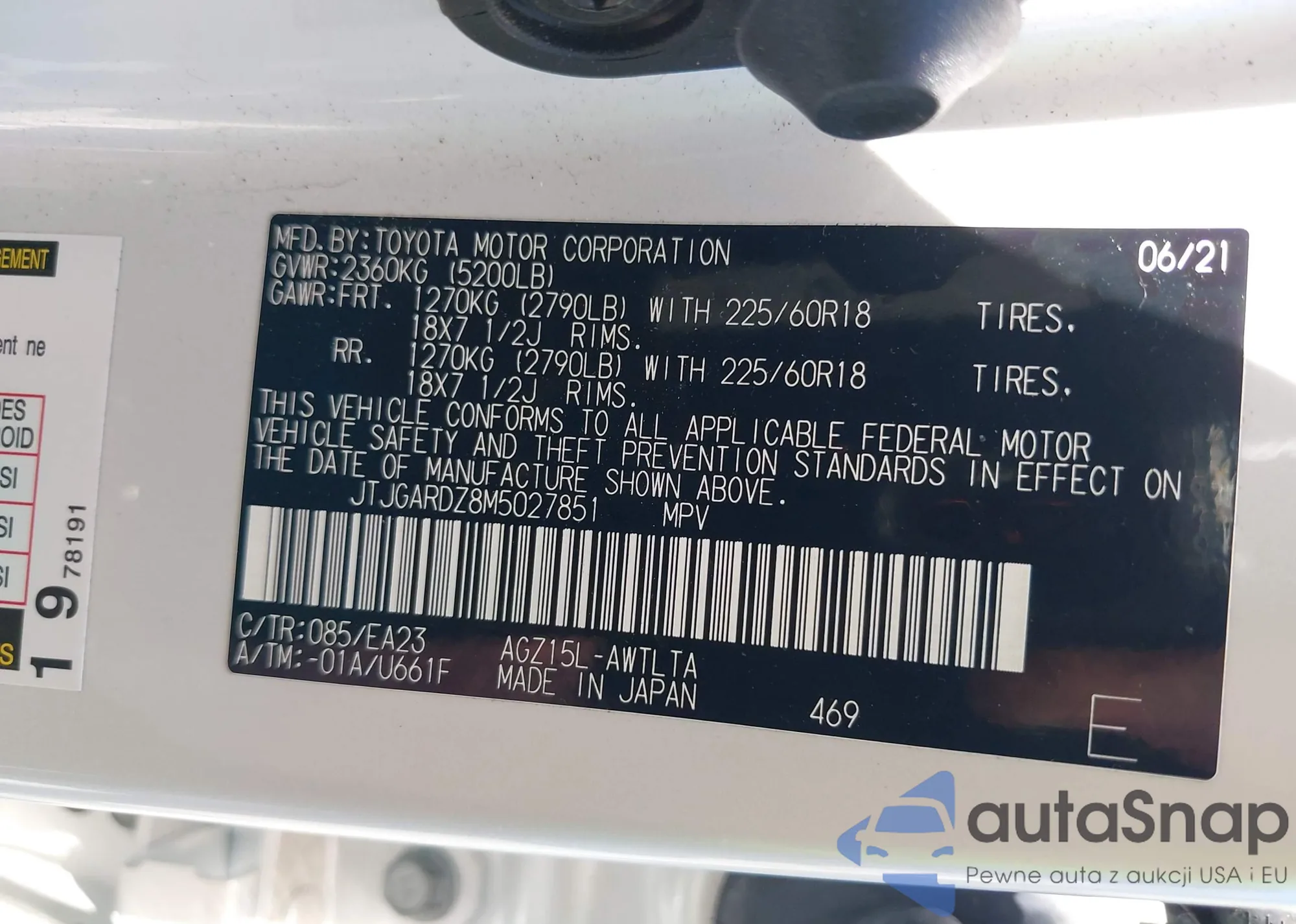 • VIN 4T1DBADK6SU500393