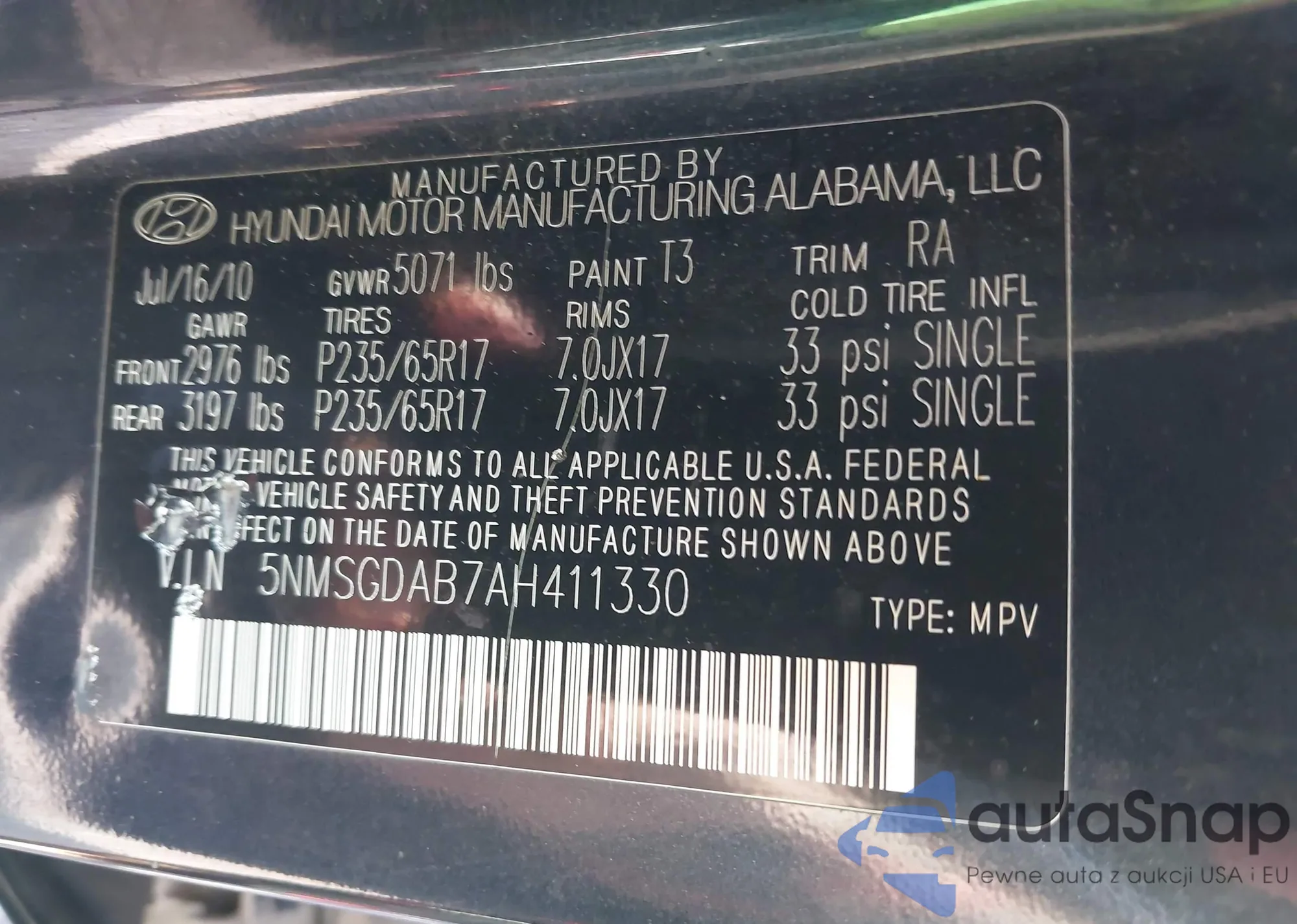 • VIN 5NMSGDAB7AH411330