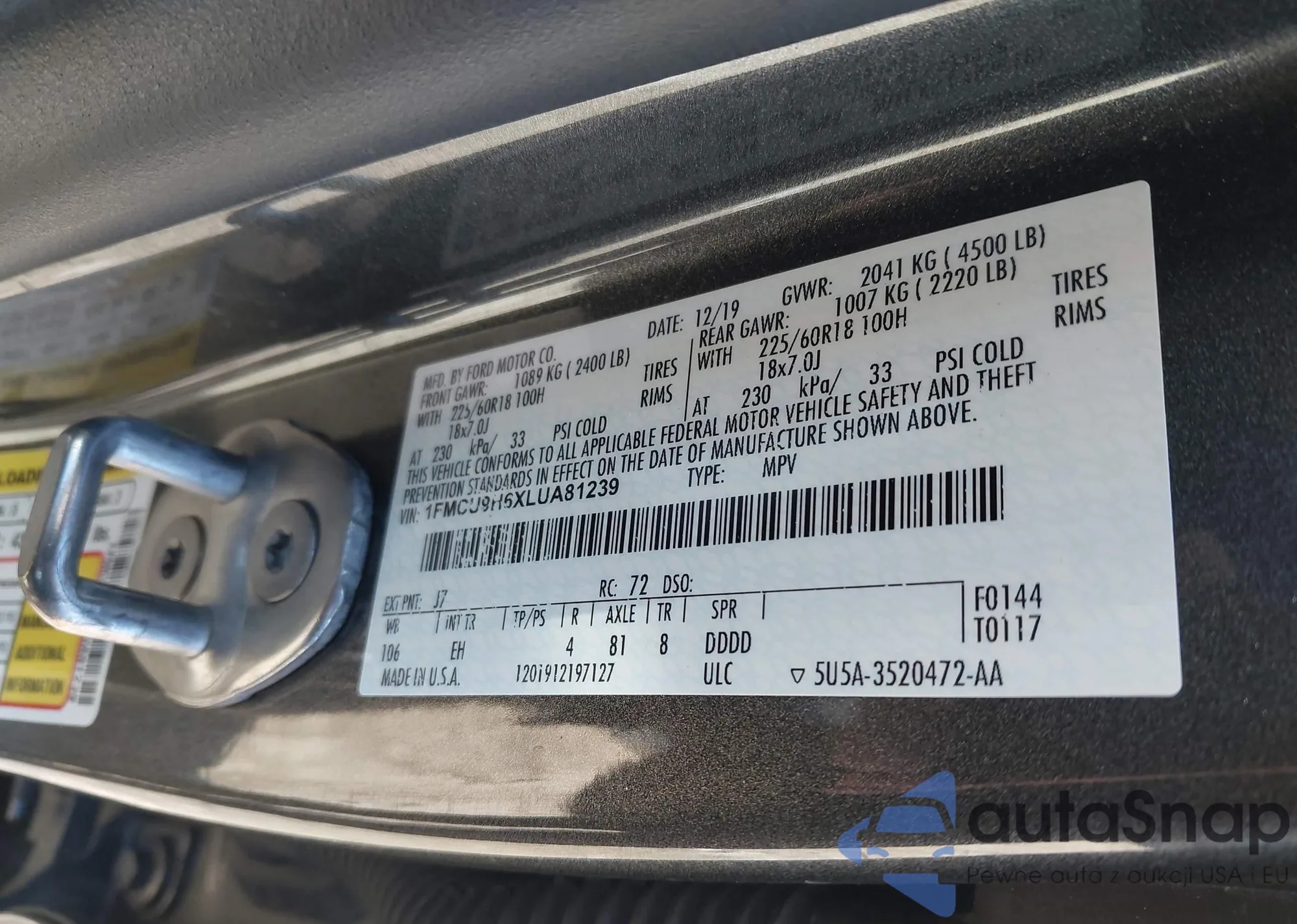LOT: 42762360 VIN: 1FADP5CU0EL510756