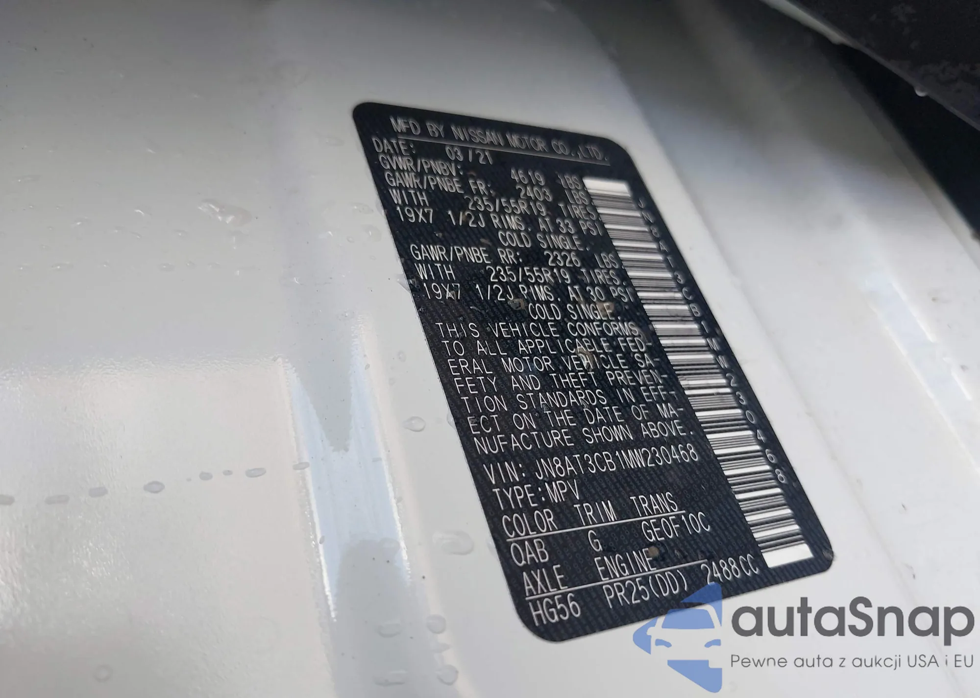 LOT: 42623491 VIN: JN8AT3CB1MW230468
