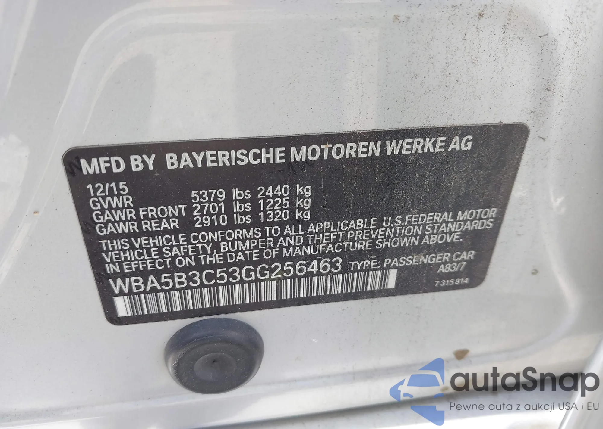 LOT: 42767824 VIN: WBA5B3C53GG256463