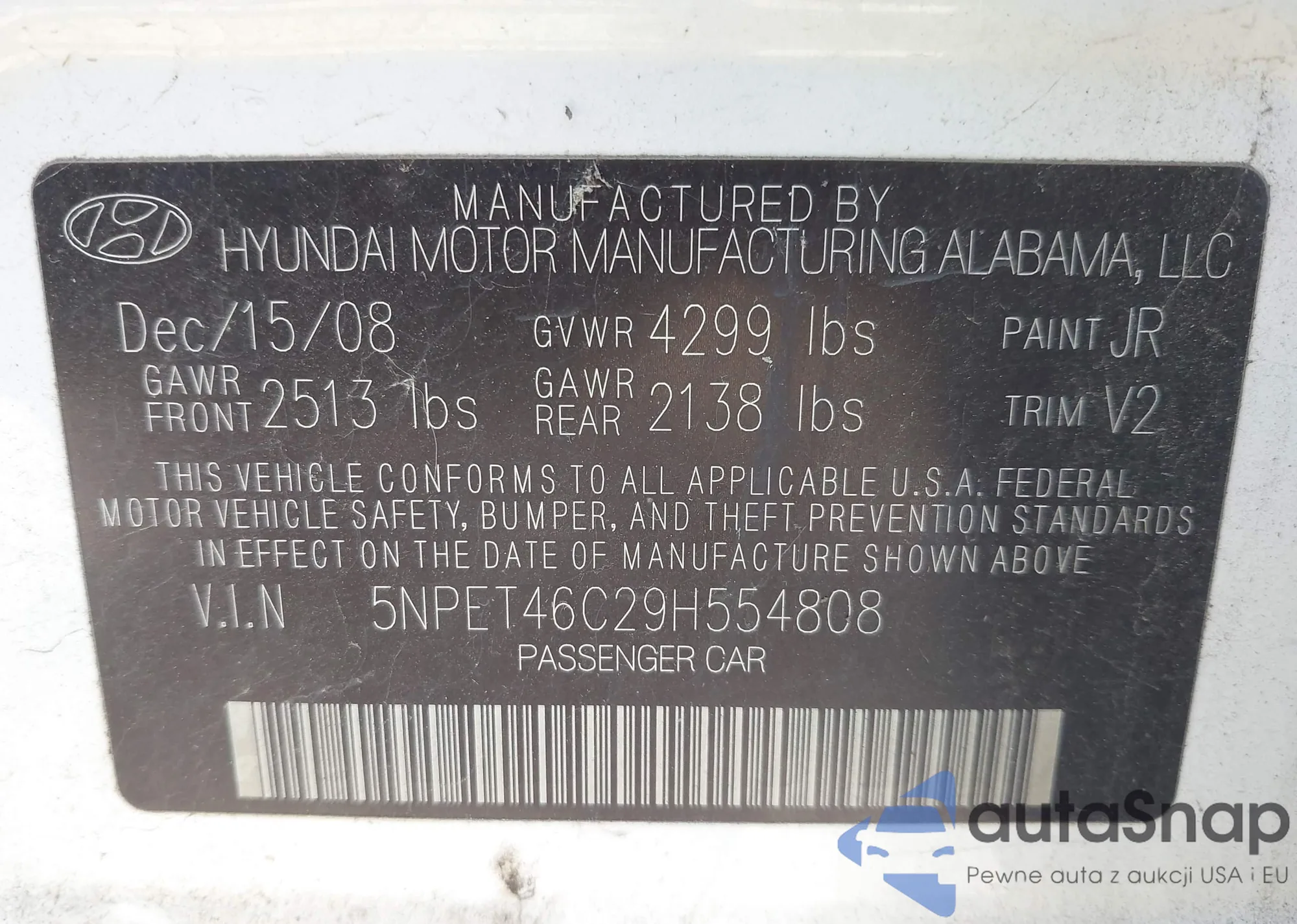 • VIN 5NPE24AF8KH781740