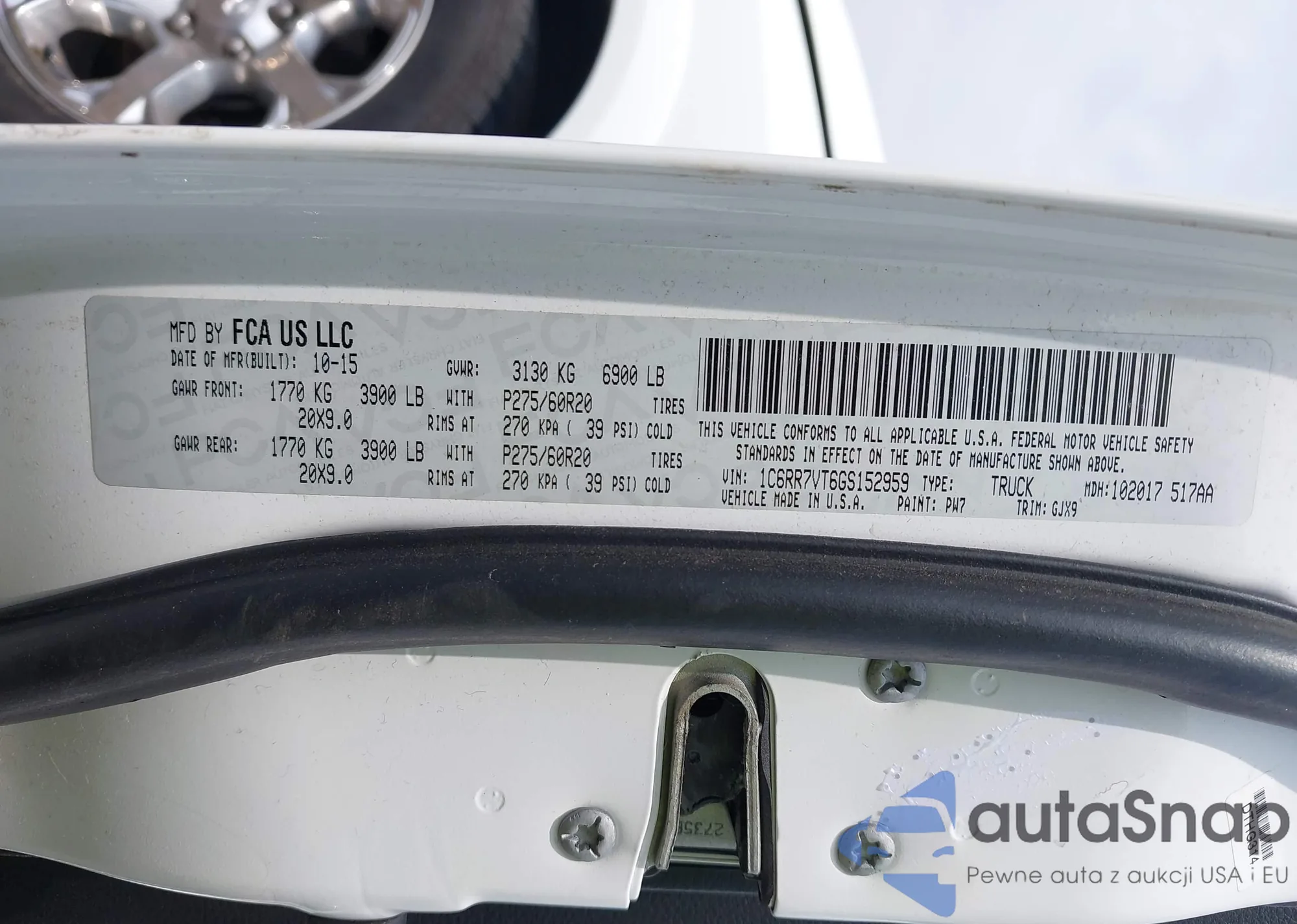 • VIN 1C6RR7VT6GS152959