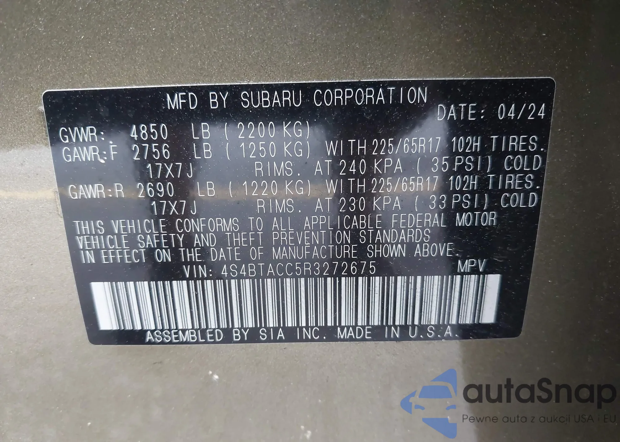 LOT: 42920393 VIN: 4S4BTACC5R3272675