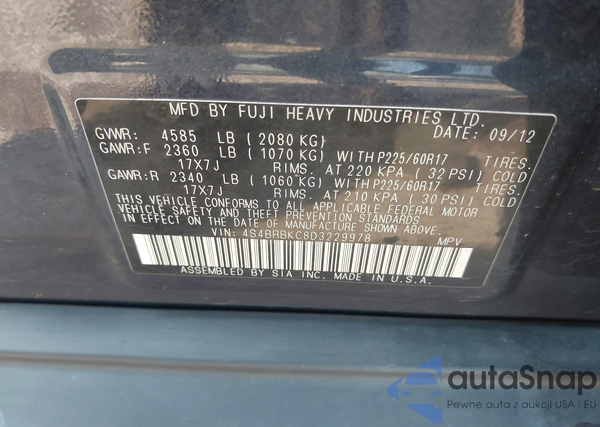 LOT: 42929749 VIN: 4S4BRBKC8D3229978