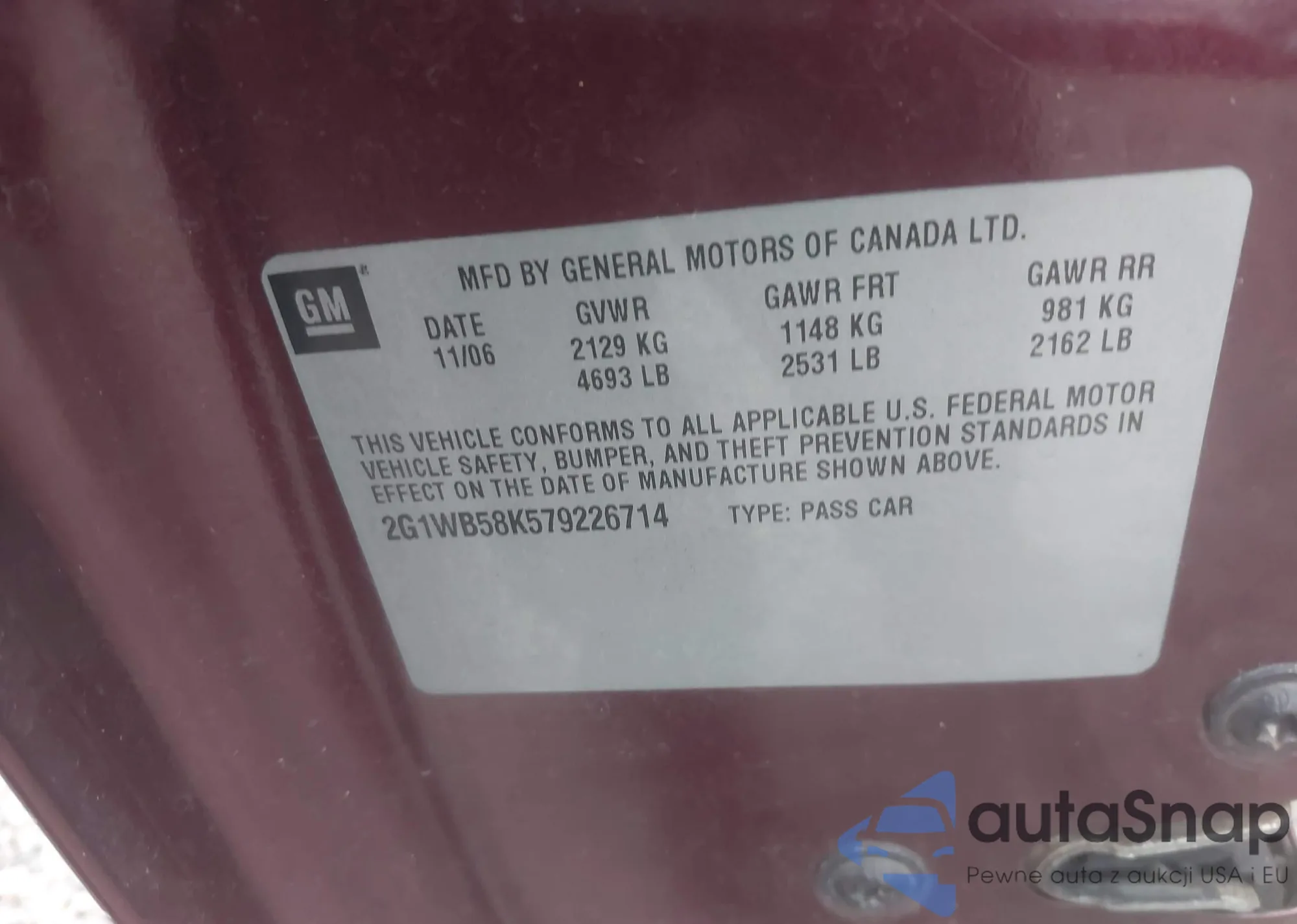 LOT: 42935258 VIN: 2G1WB58K579226714