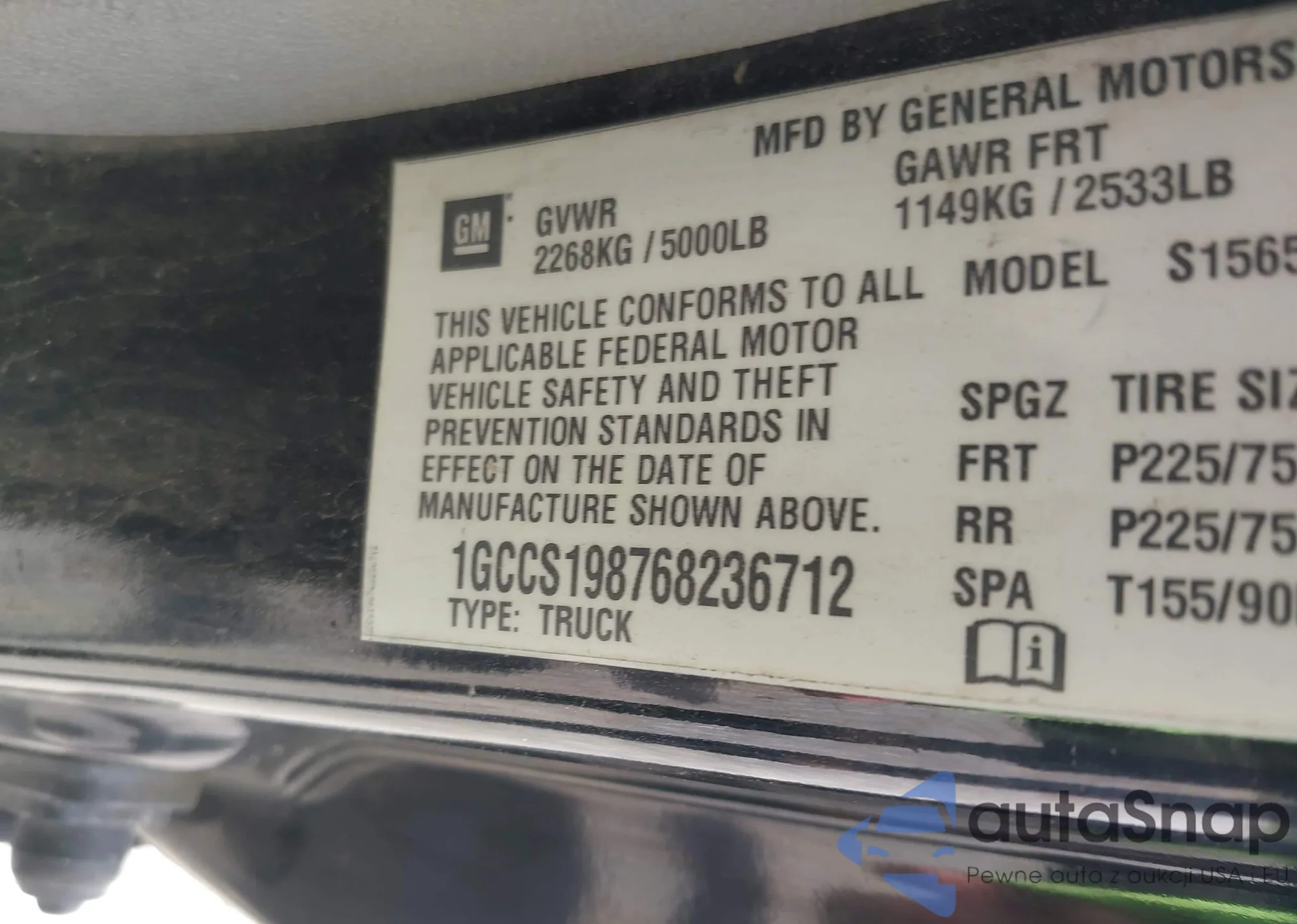 • VIN 1GCCS198768236712