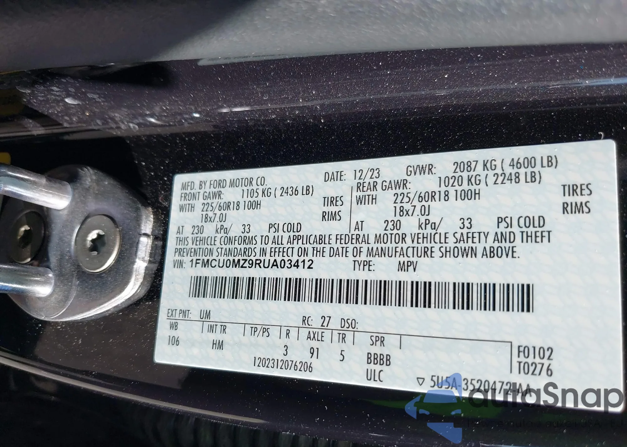 • VIN 1FMCU0MZ9RUA03412