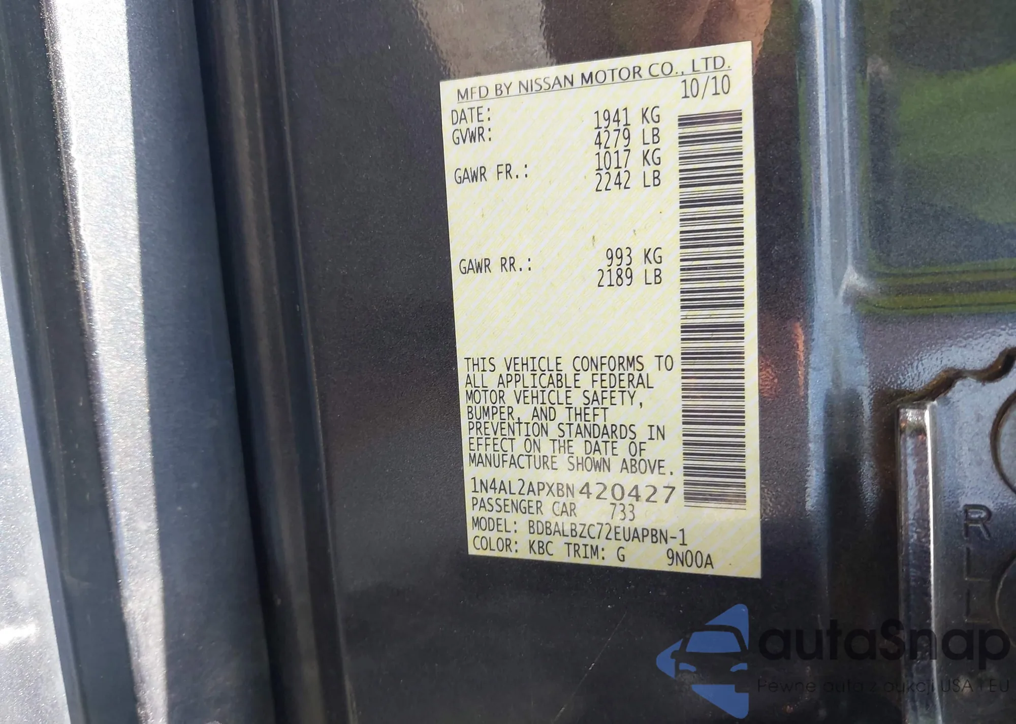 • VIN 1N4AL2APXBN420427