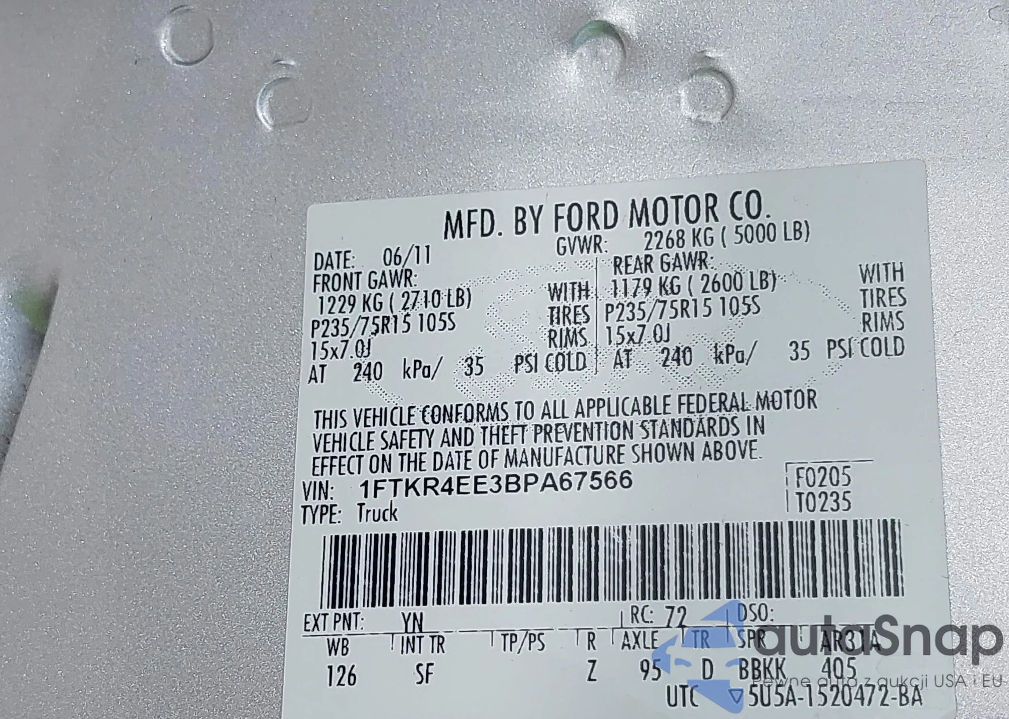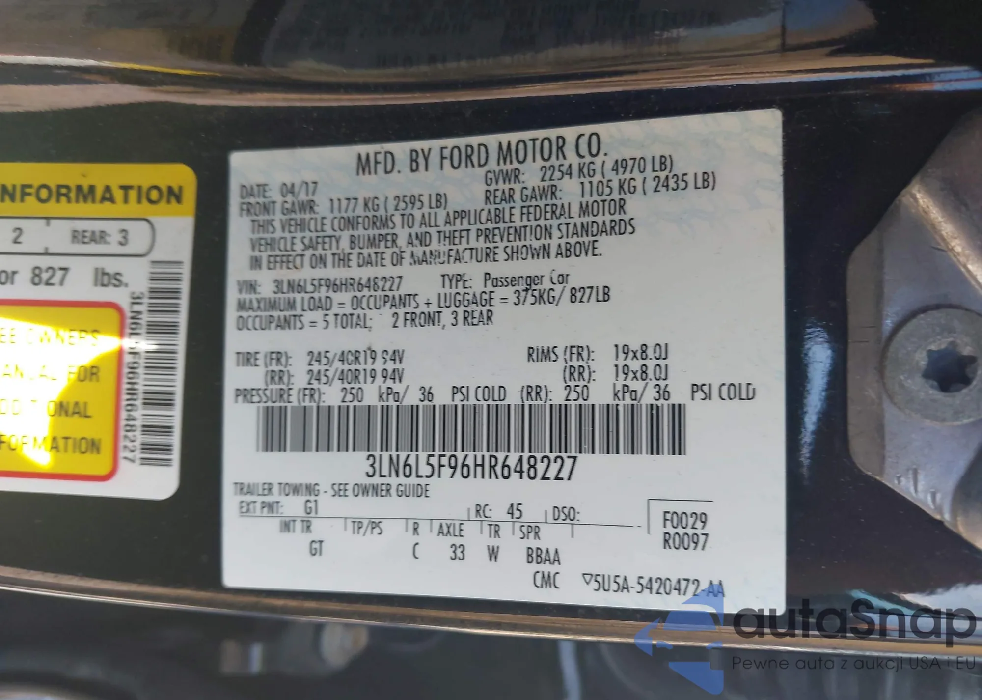 • VIN 1FADP5BU7DL540806