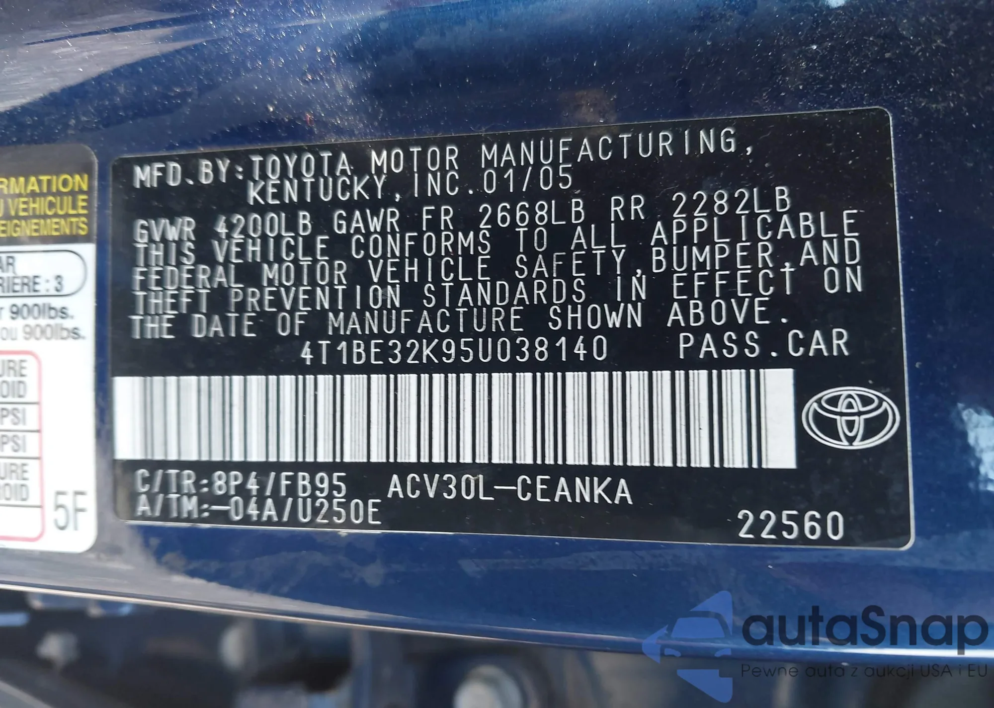 LOT: 42425941 VIN: 4T1BE32K95U038140