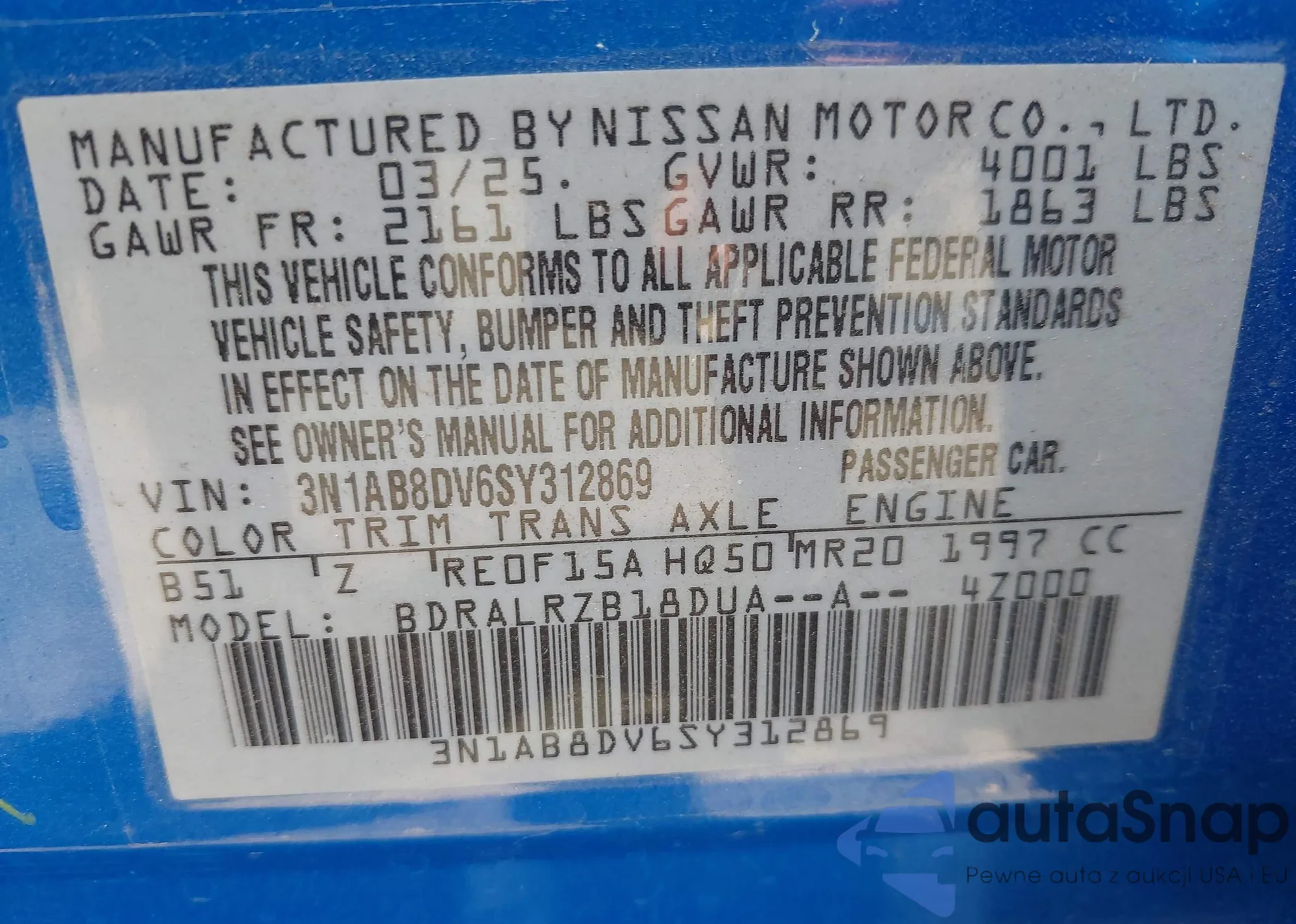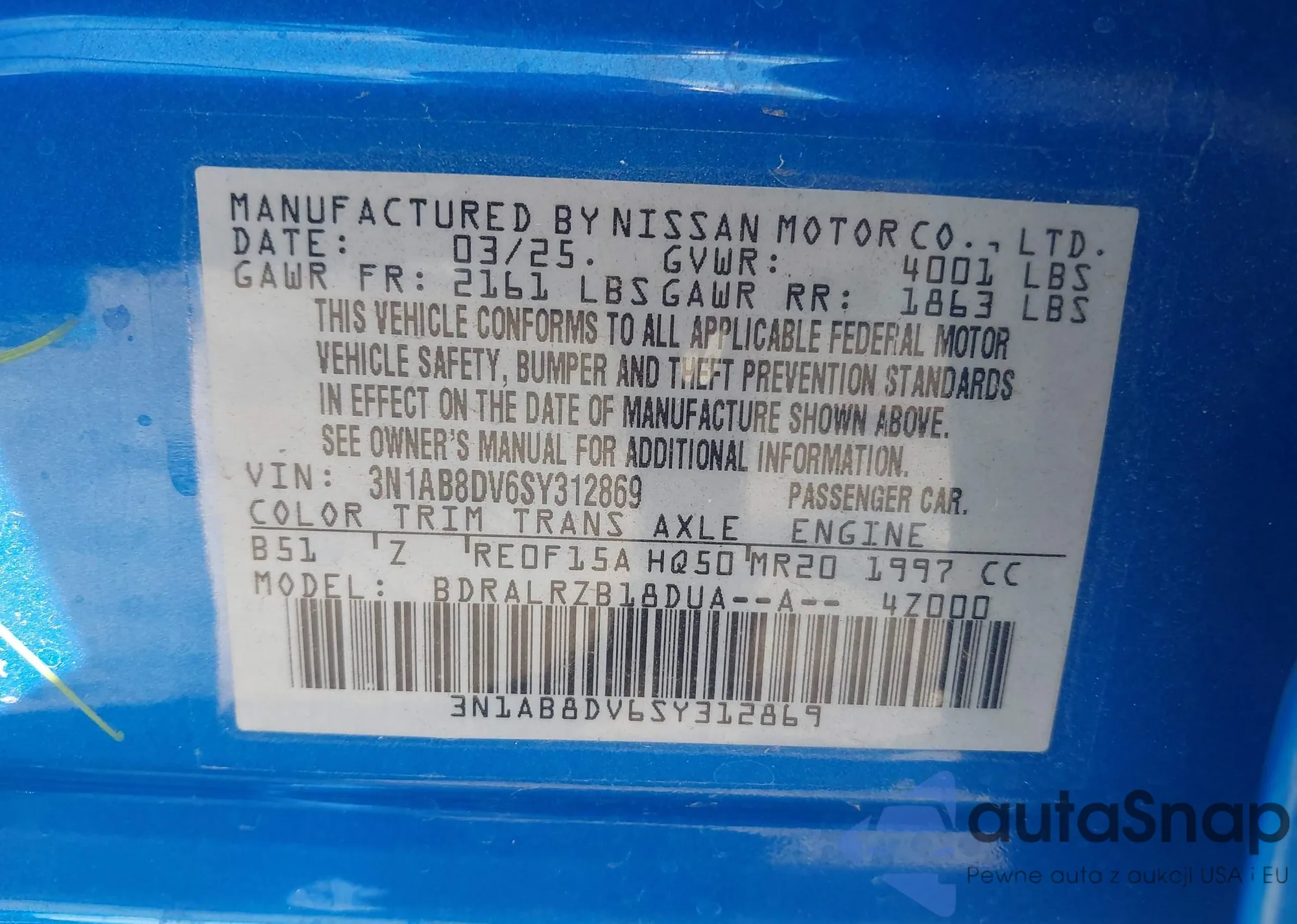 • VIN 3N1AB8DV6SY312869
