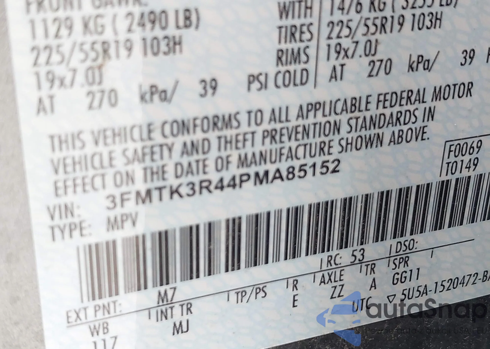 • VIN 3FMTK3R44PMA85152